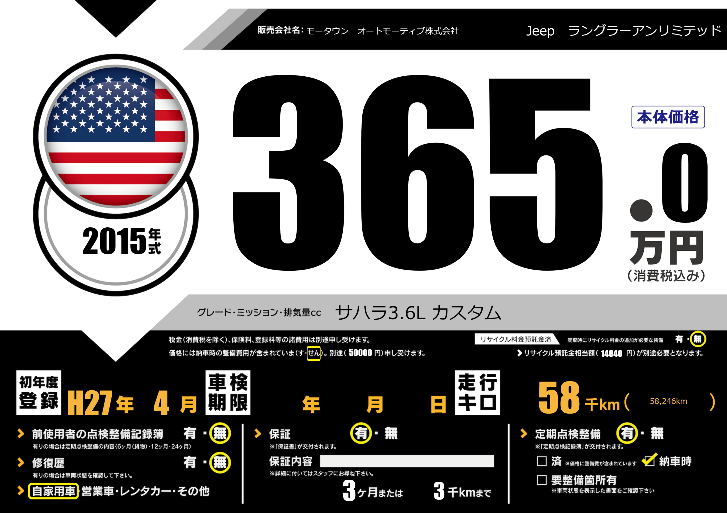 保証付き 保証内容(---) 3ヶ月または(3)千kmまで |