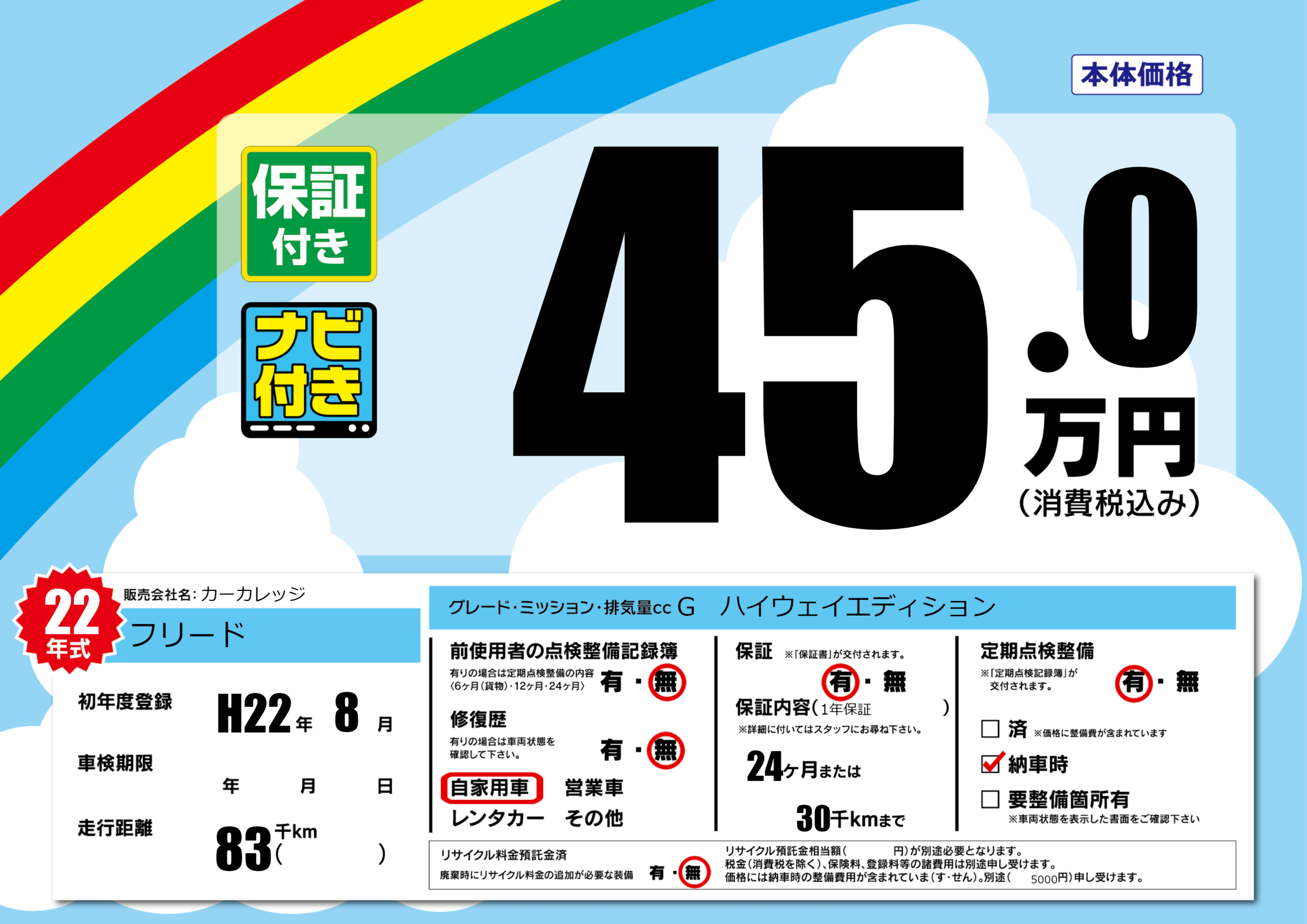 | 走行キロ | 8.3万km | 初年度登録 | H22年8月 |