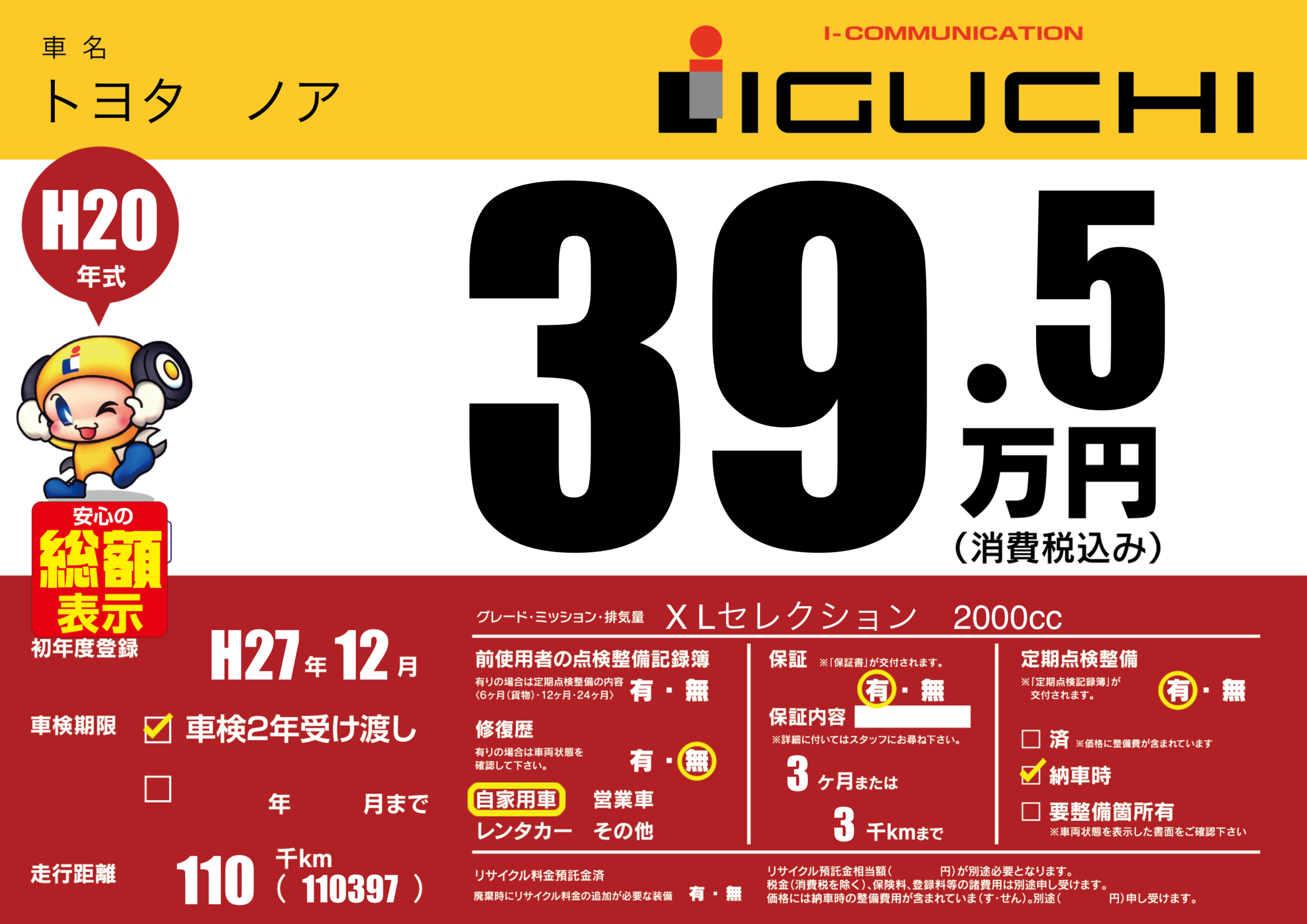 | 定期点検整備 | 定期点検整備あり 納車時あり | ||