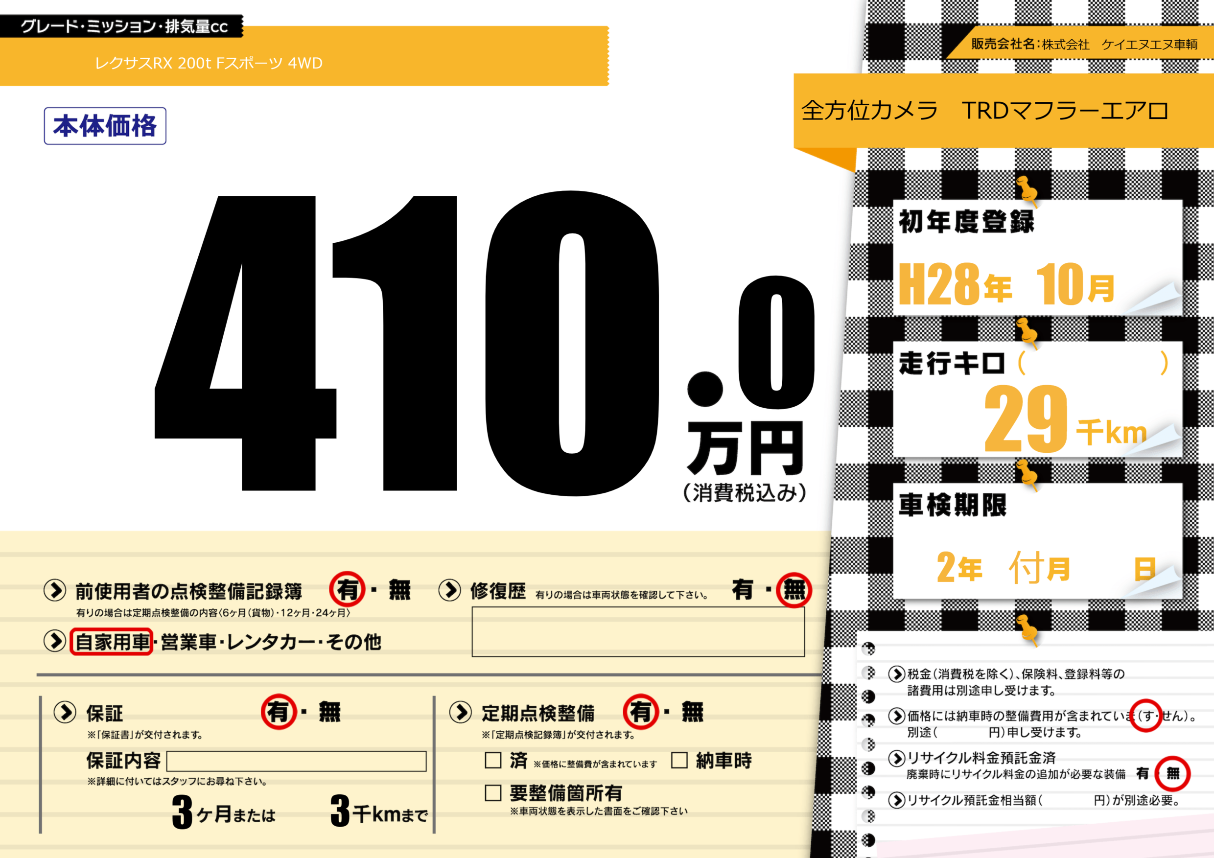 保証付き 保証内容(---) 3ヶ月または(3)千kmまで |