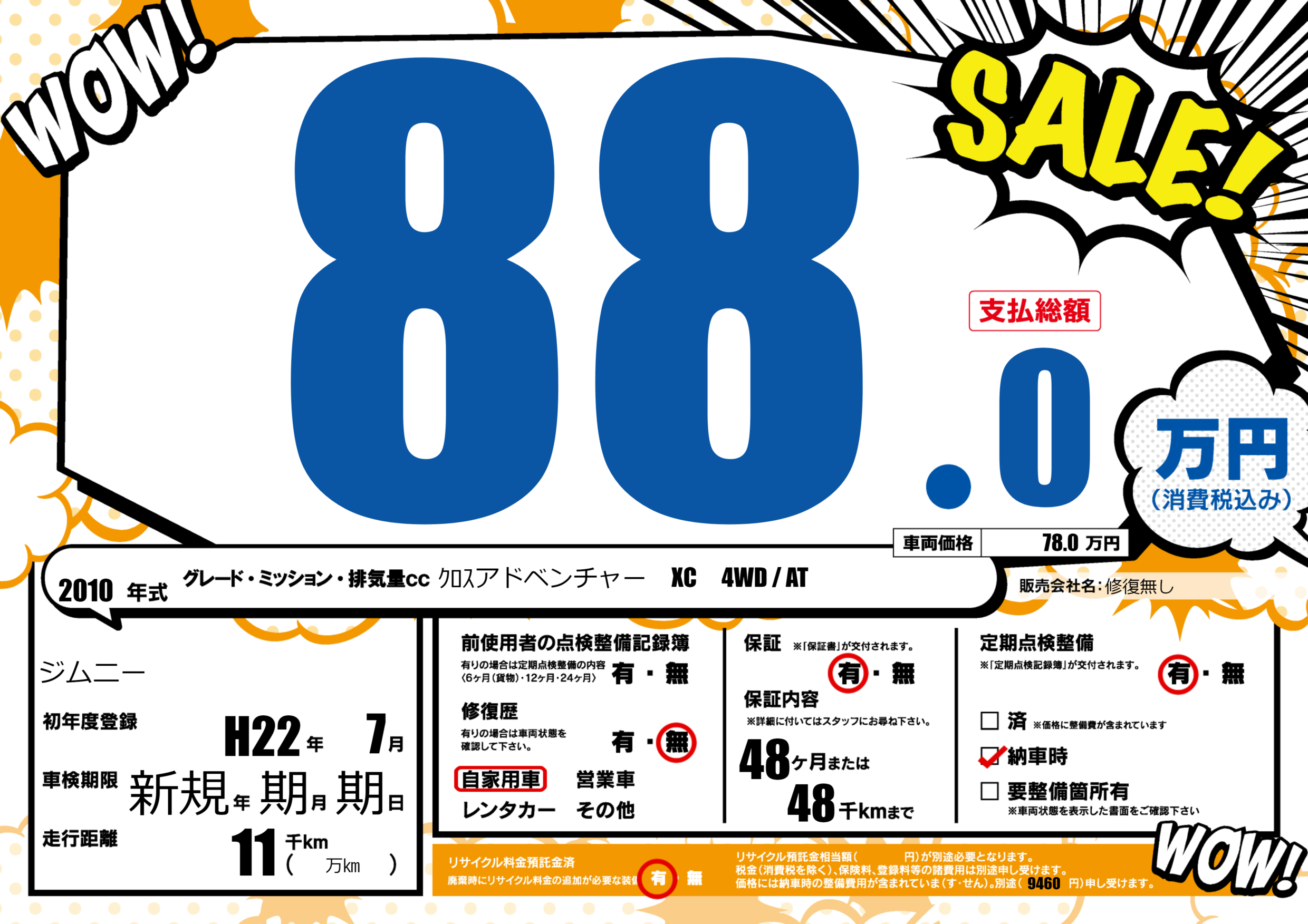 | 車名 | ジムニー | グレード ミッション 排気量 |