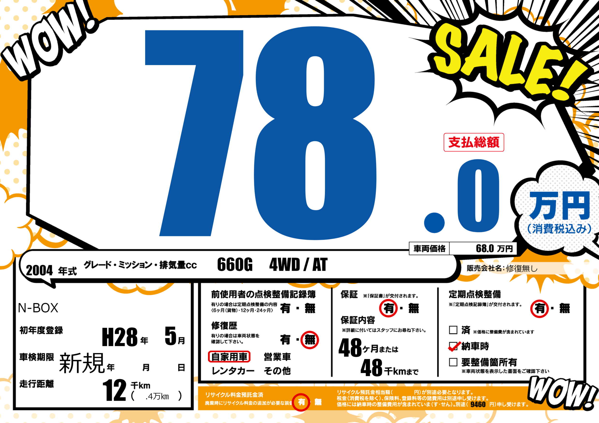 保証付き 保証内容(---) 48ヶ月または(48)千kmまで |