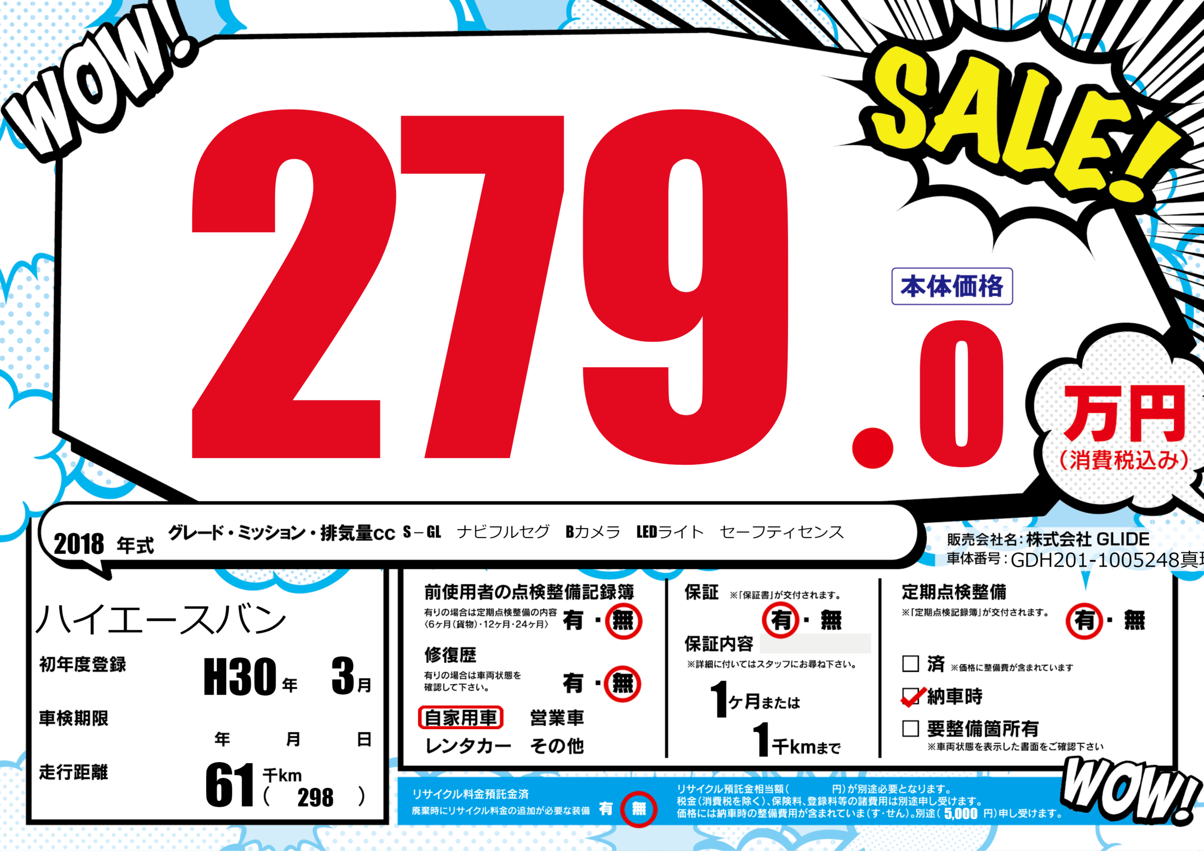 | 車名 | ハイエースバン | グレード ミッション 排気量 |