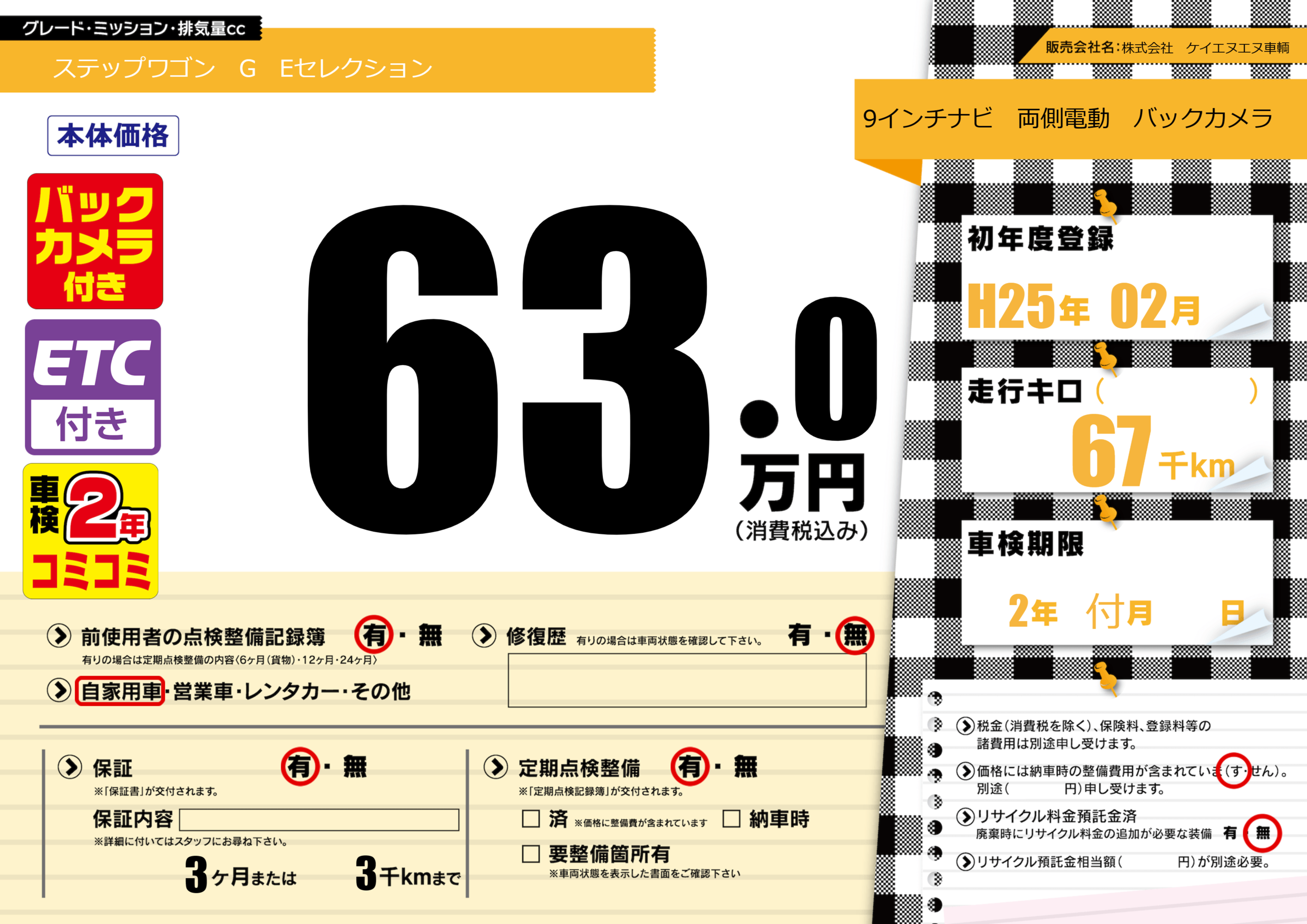 保証付き 保証内容(---) 3ヶ月または(3)千kmまで |