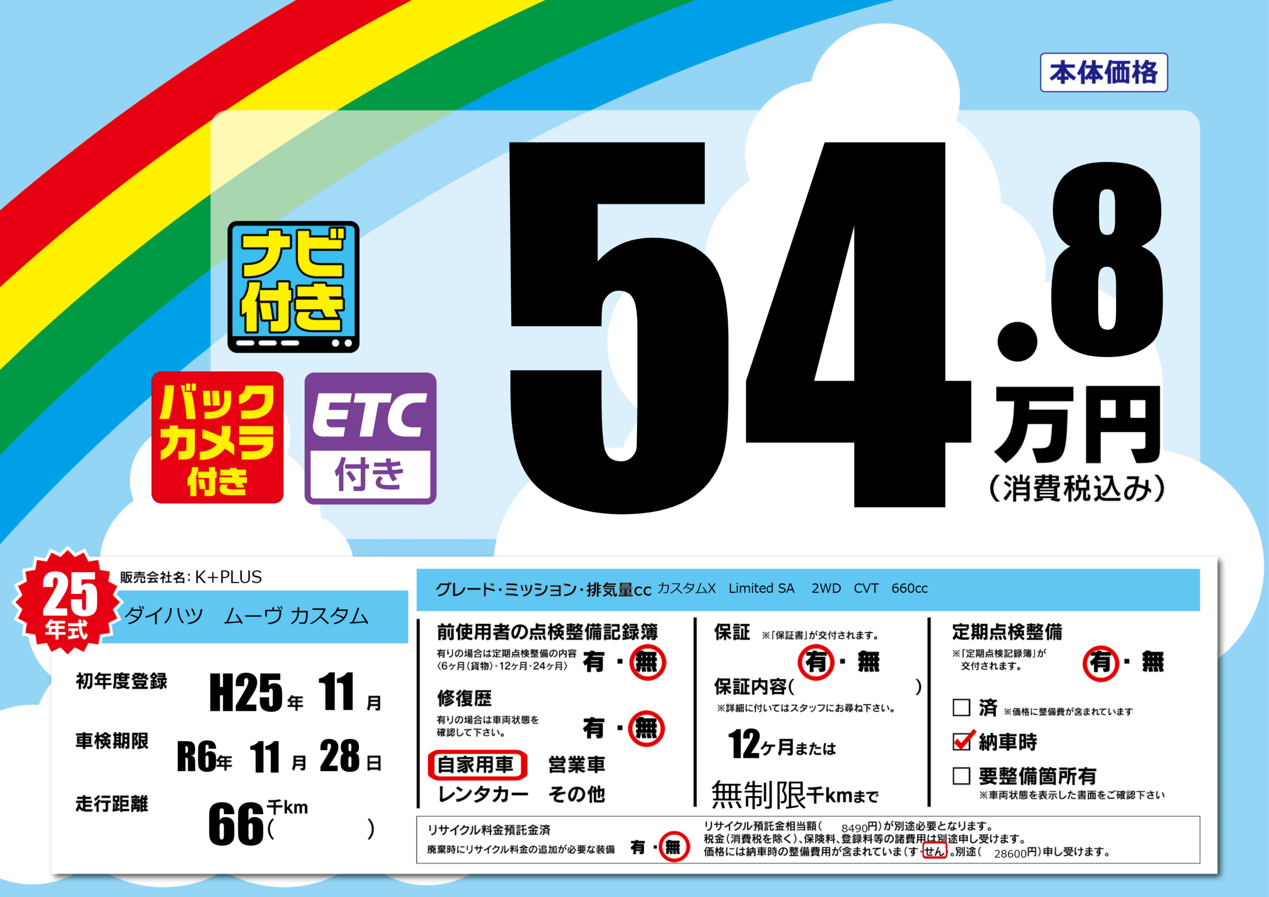 | 走行キロ | 6.6万km | 初年度登録 | H25年11月 |