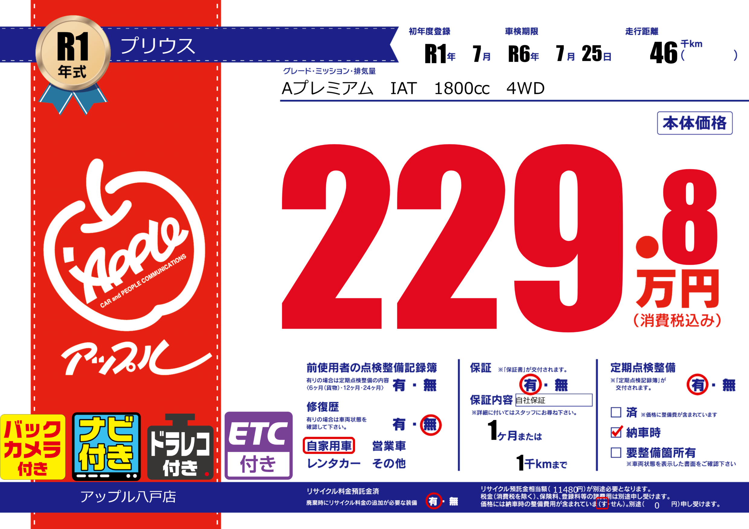 あり | 車検制限 | R6年7月25月 |