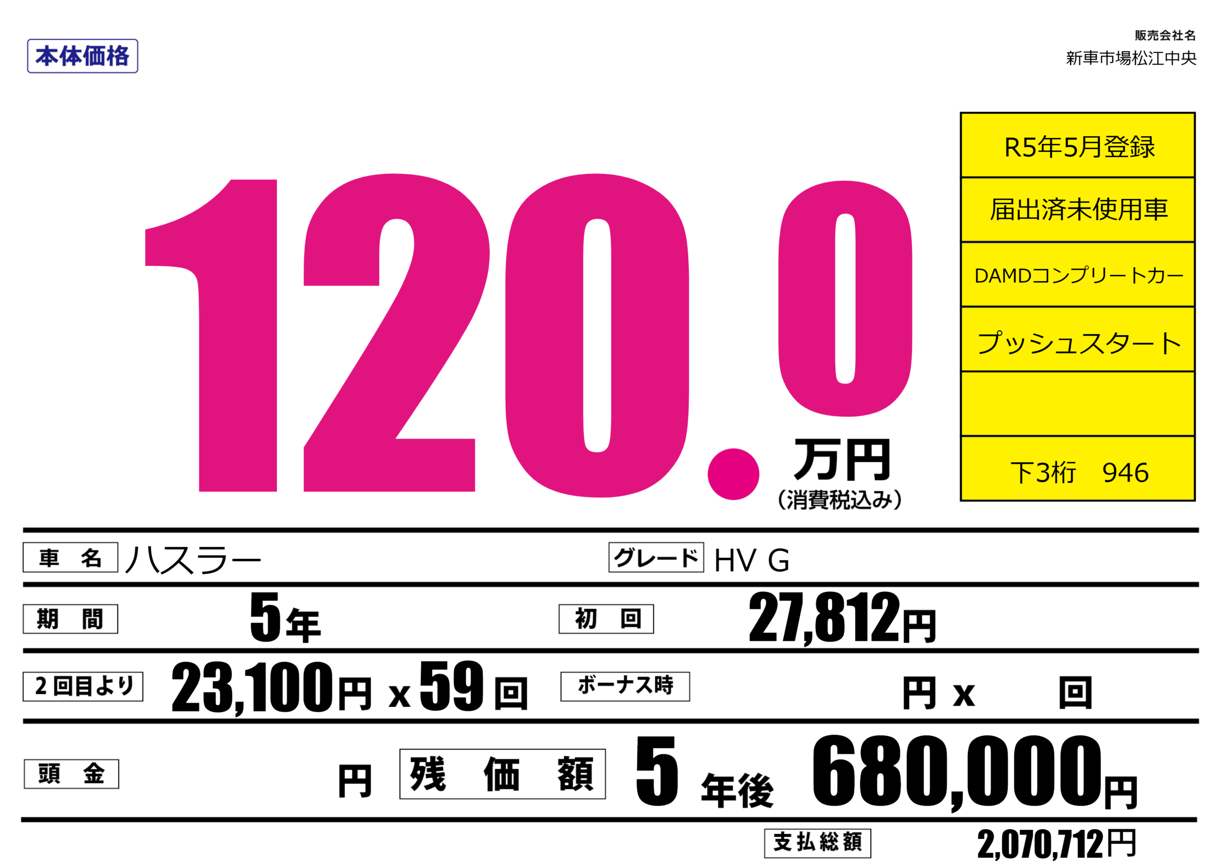 | 車名 | ハスラー | グレード ミッション 排気量 |