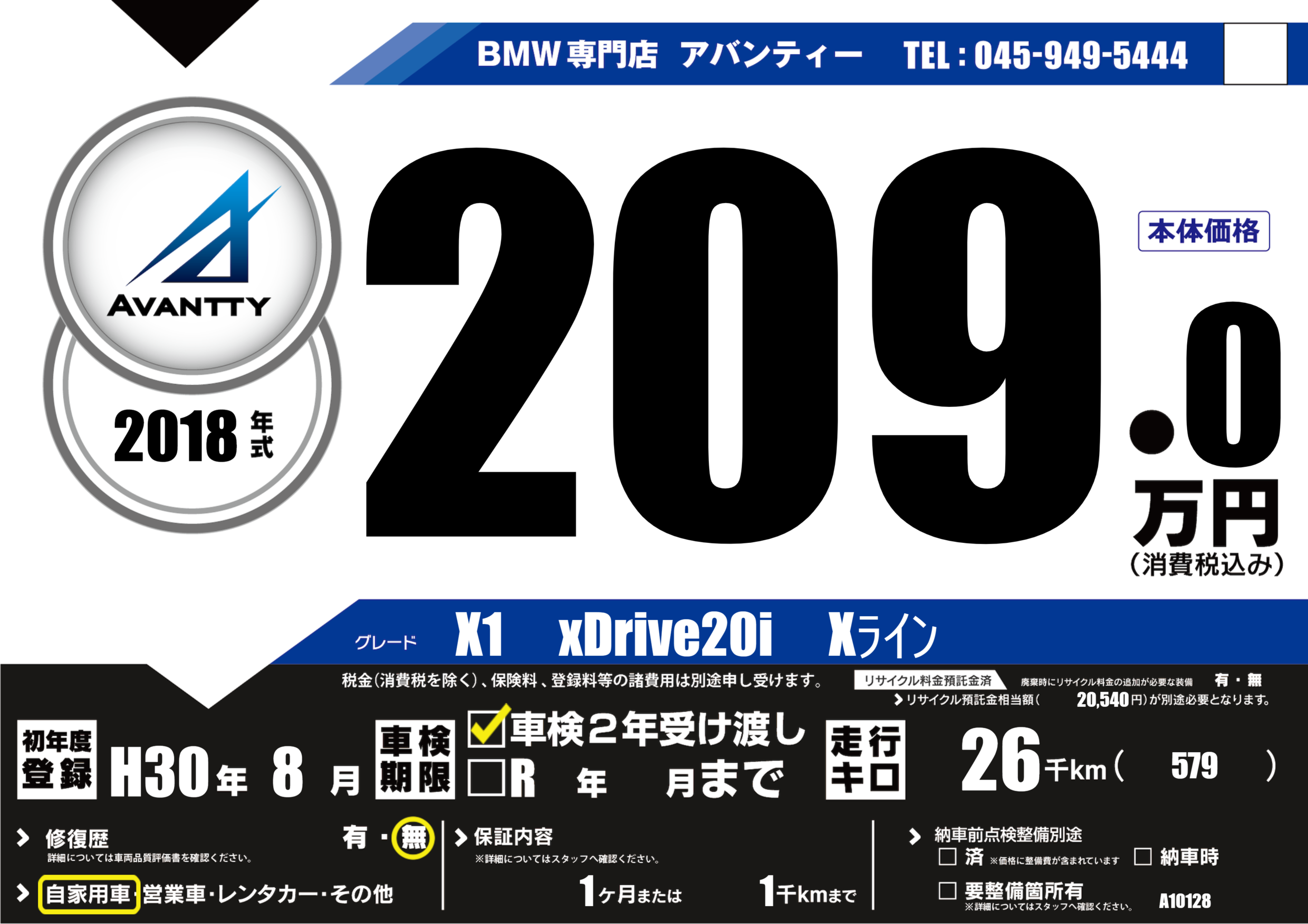 | 走行キロ | 2.6万km | 初年度登録 | H30年8月 |