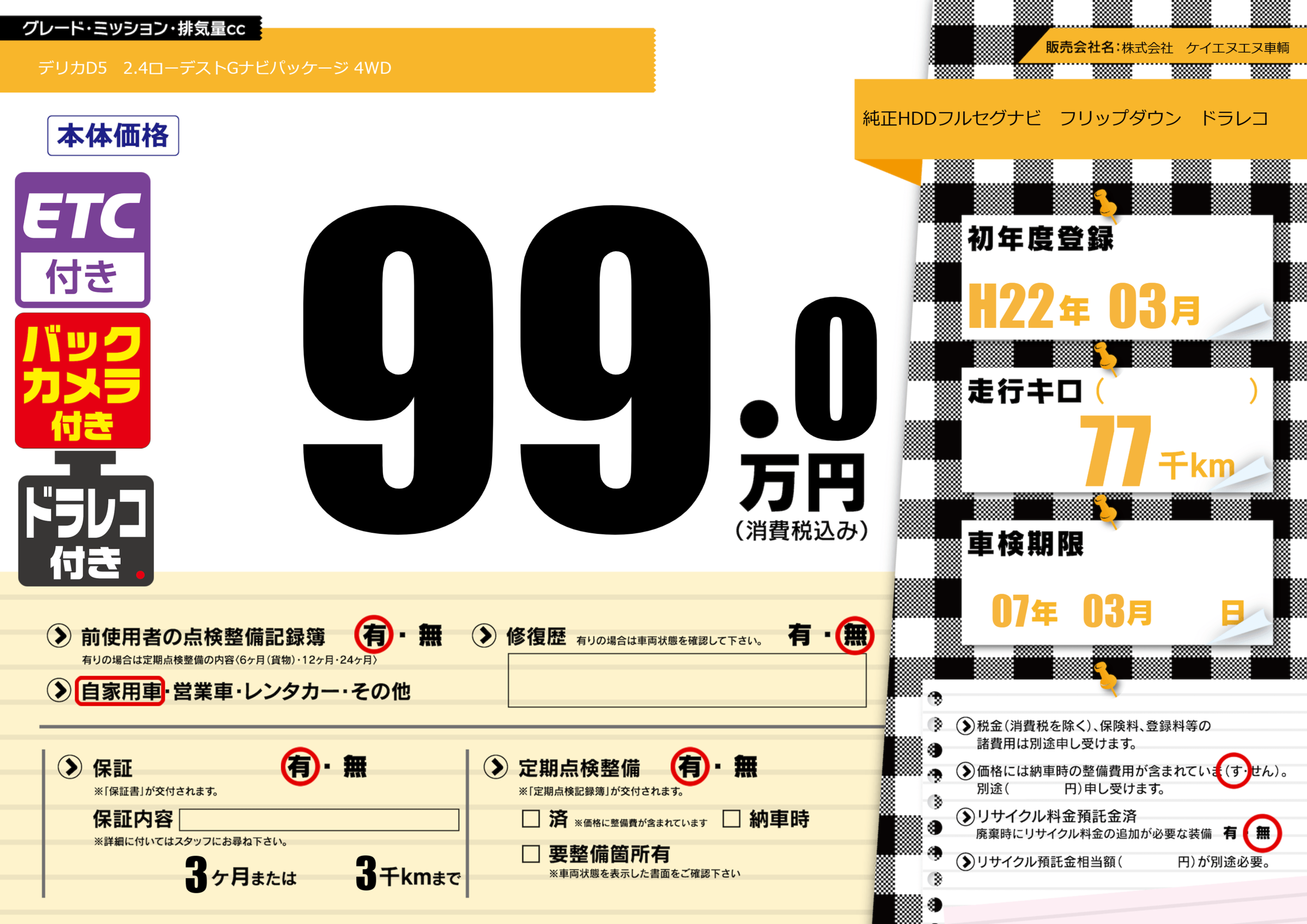 保証付き 保証内容(---) 3ヶ月または(3)千kmまで |