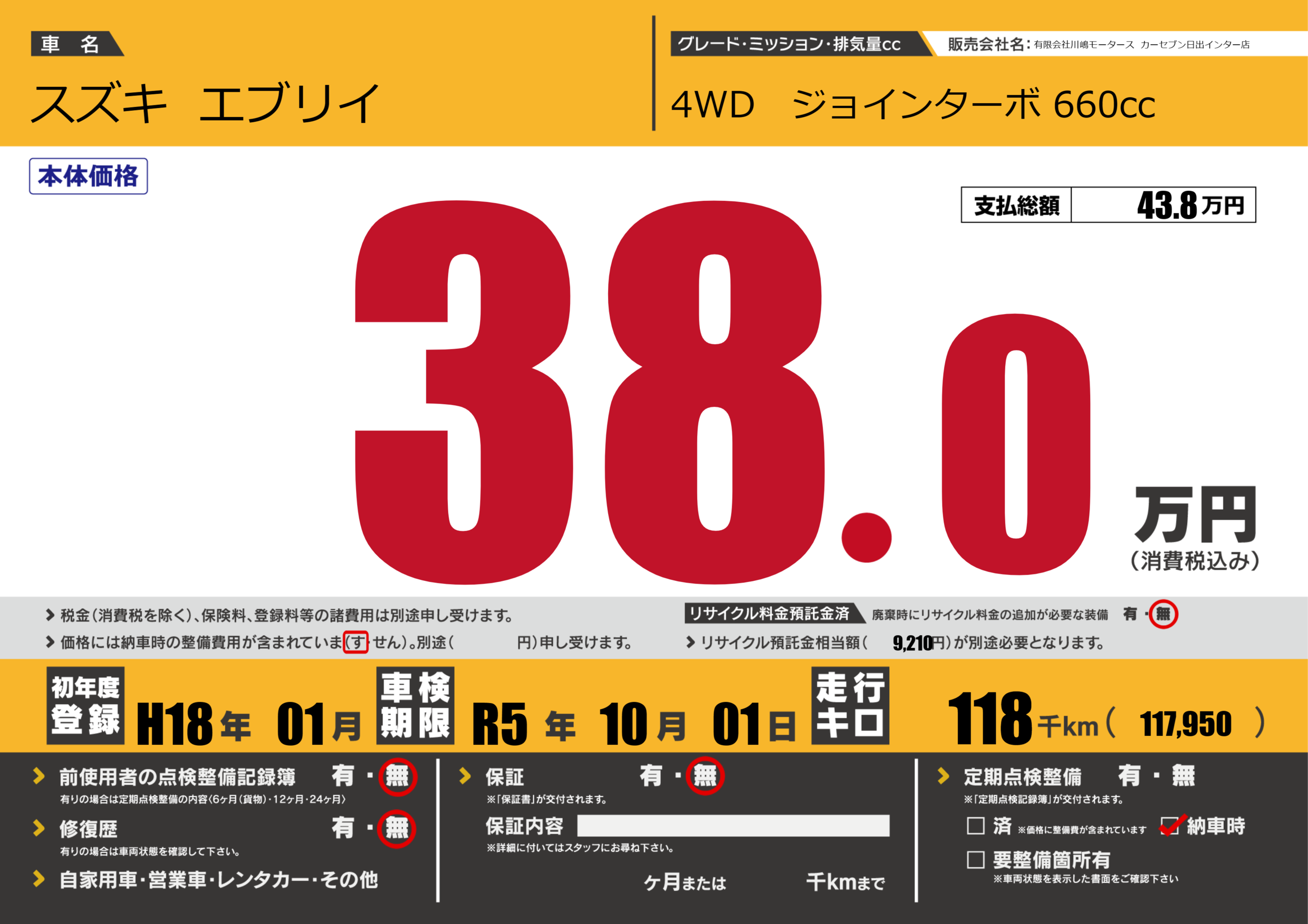 | 車名 | スズキ エブリイ | グレード ミッション 排気量 |