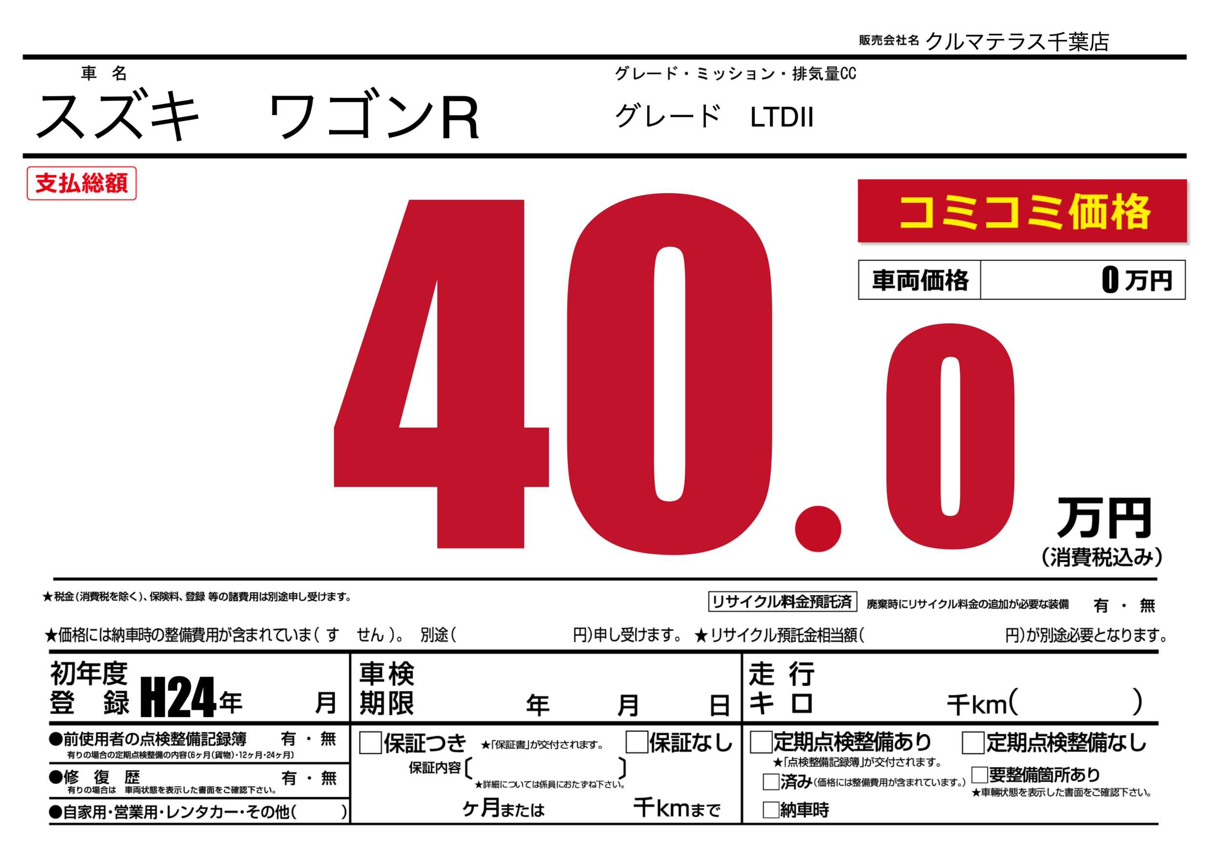 | 車名 | スズキ ワゴンR | グレード ミッション 排気量 |