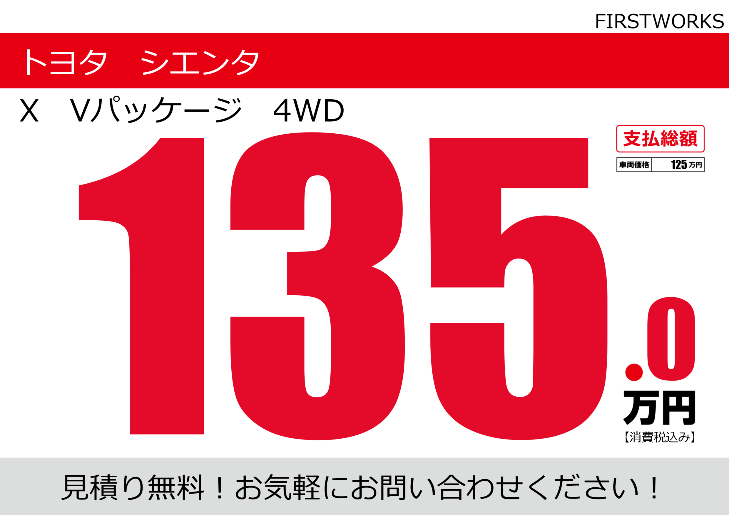 | 車名 | トヨタ シエンタ | グレード ミッション 排気量 |