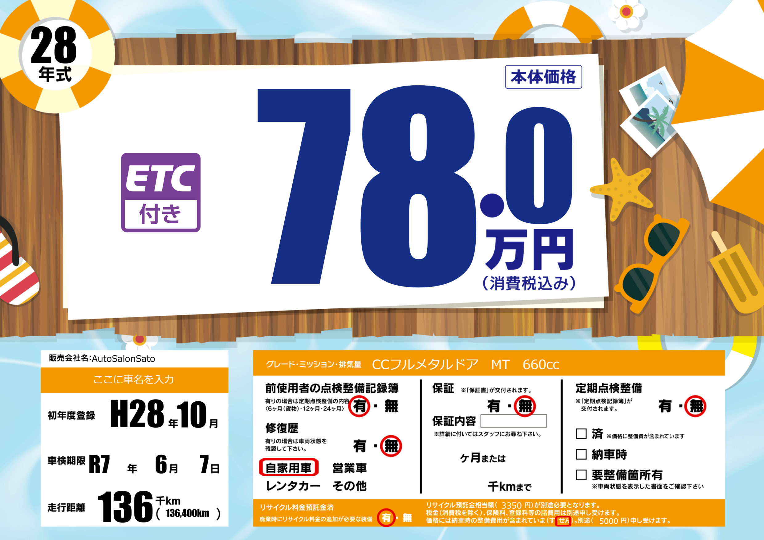 | 走行キロ | 13.6万km | 初年度登録 | H28年10月 |