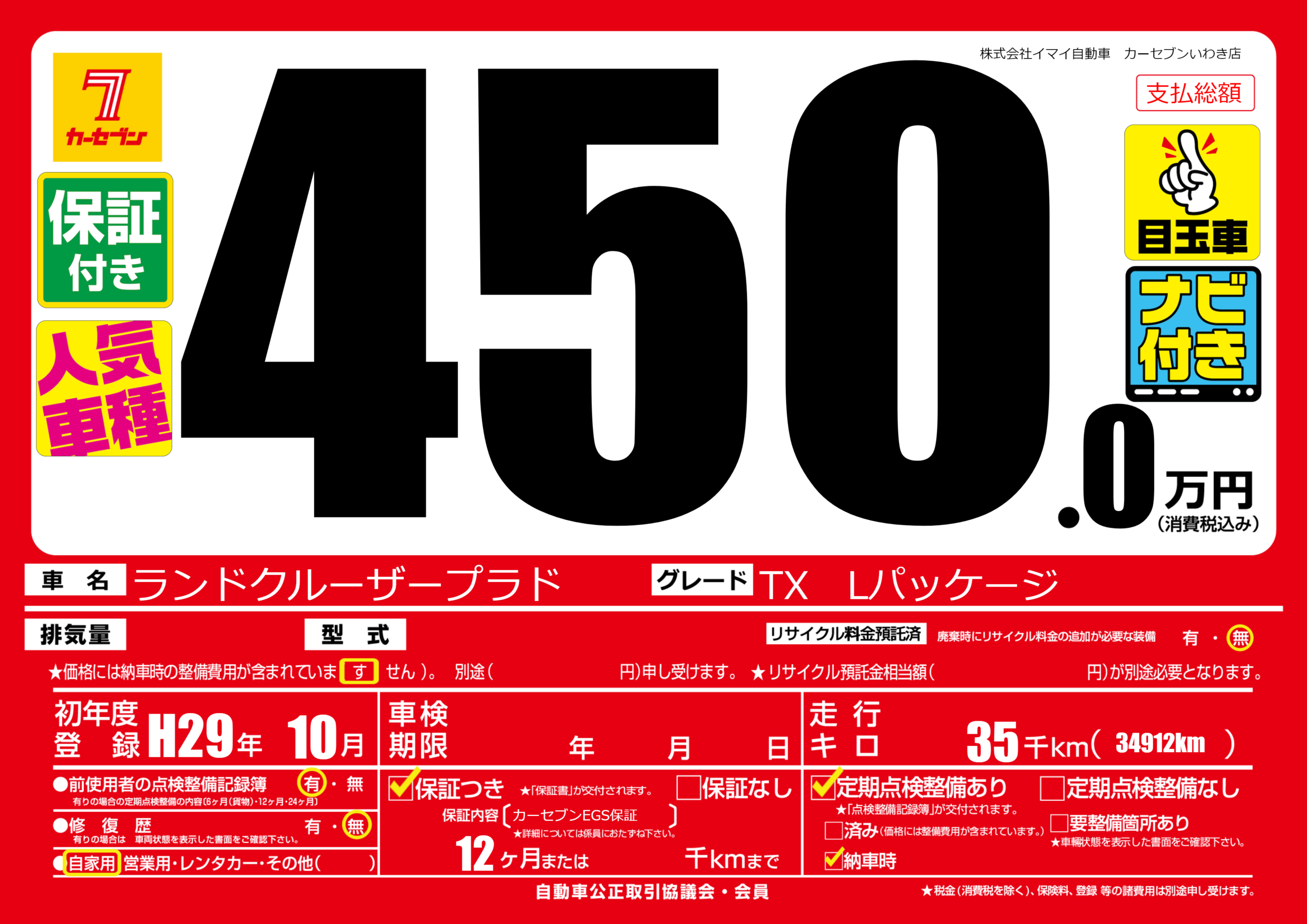 | 車名 | ランドクルーザープラド | グレード ミッション 排気量 |