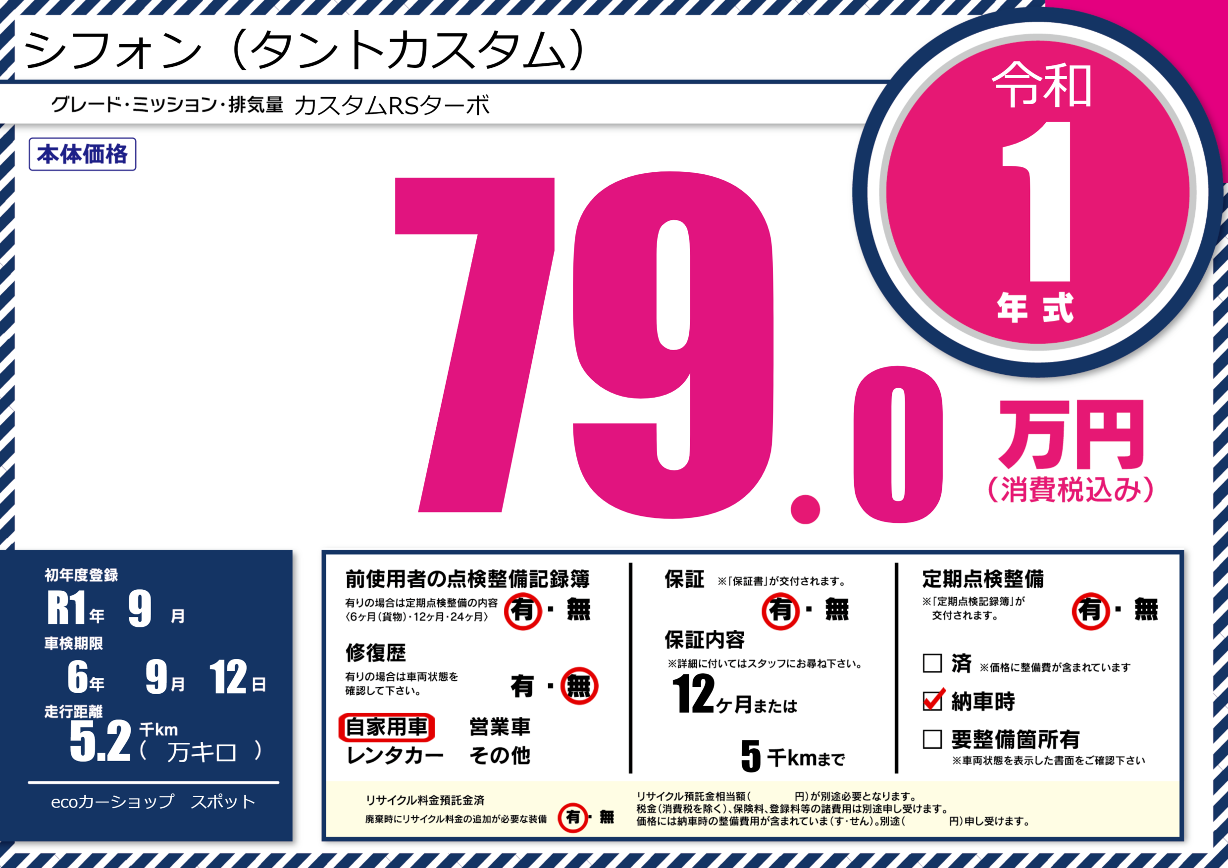 保証付き 保証内容(---) 12ヶ月または(5)千kmまで |