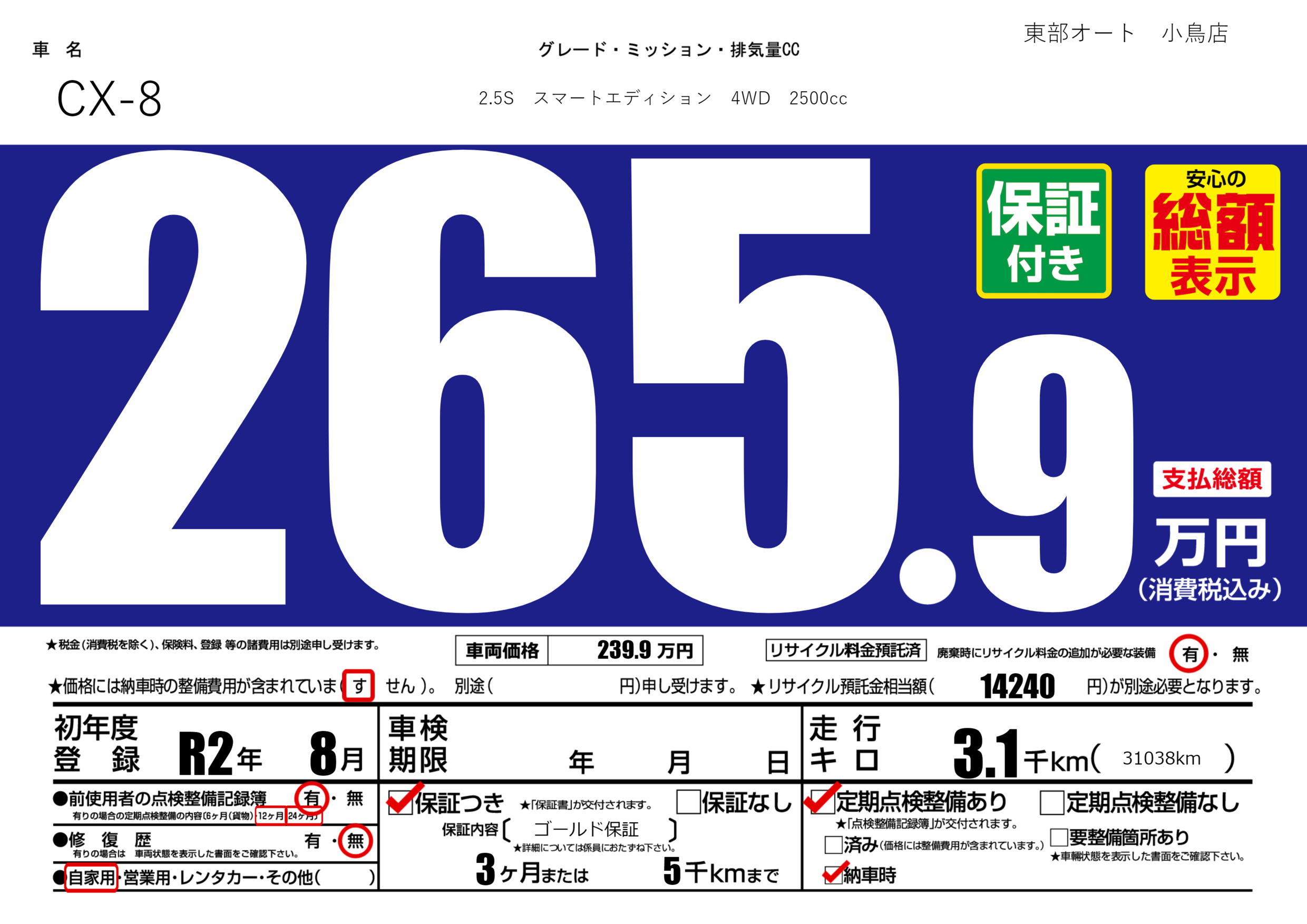 | 車名 | CX-8 | グレード ミッション 排気量 |