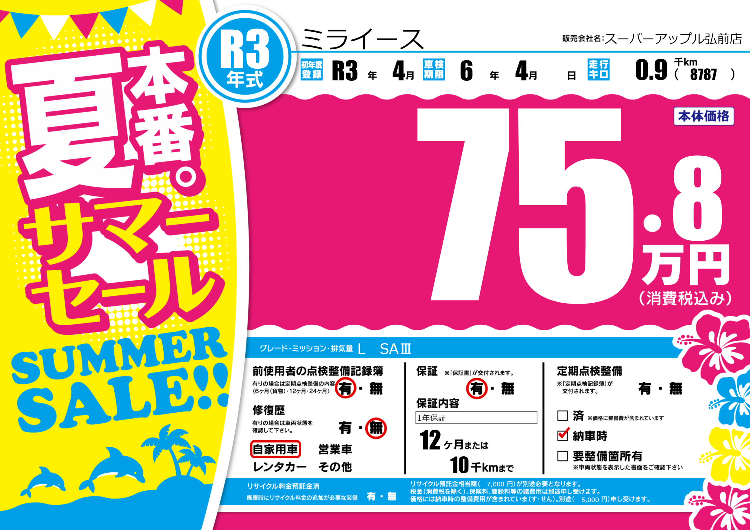 保証付き 保証内容(1年保証) 12ヶ月または(10)千kmまで |