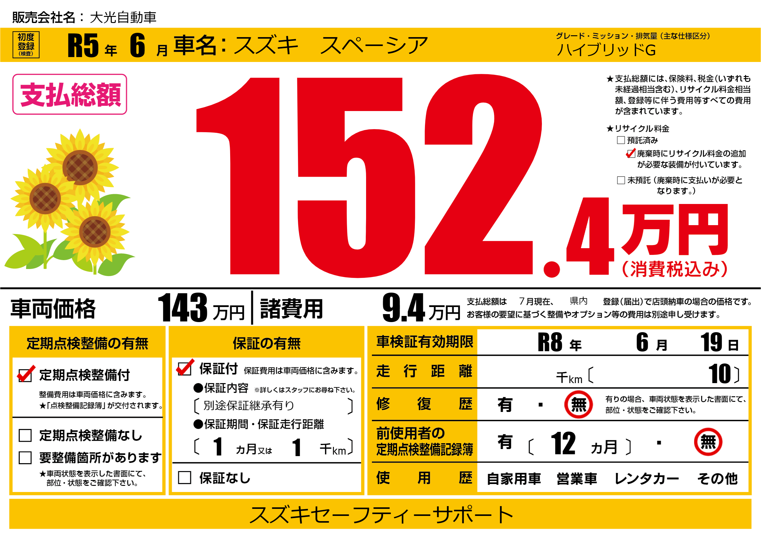 | 走行キロ | - | 初年度登録 | R5年6月 |