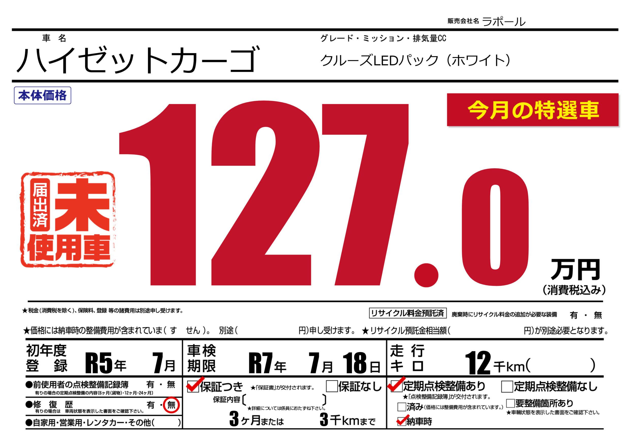 保証付き 保証内容(---) 3ヶ月または(3)千kmまで |