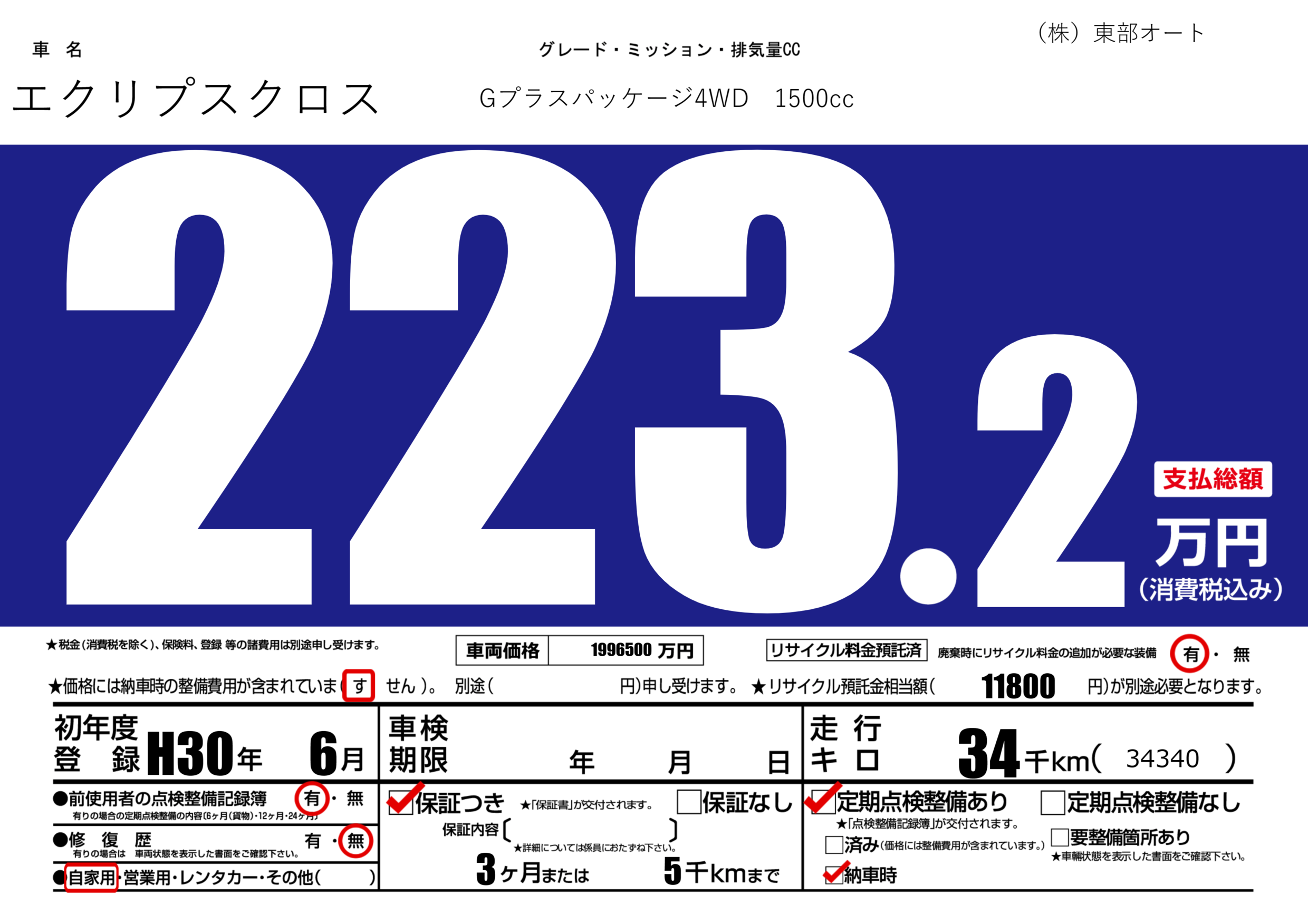 | 走行キロ | 3.4万km | ||