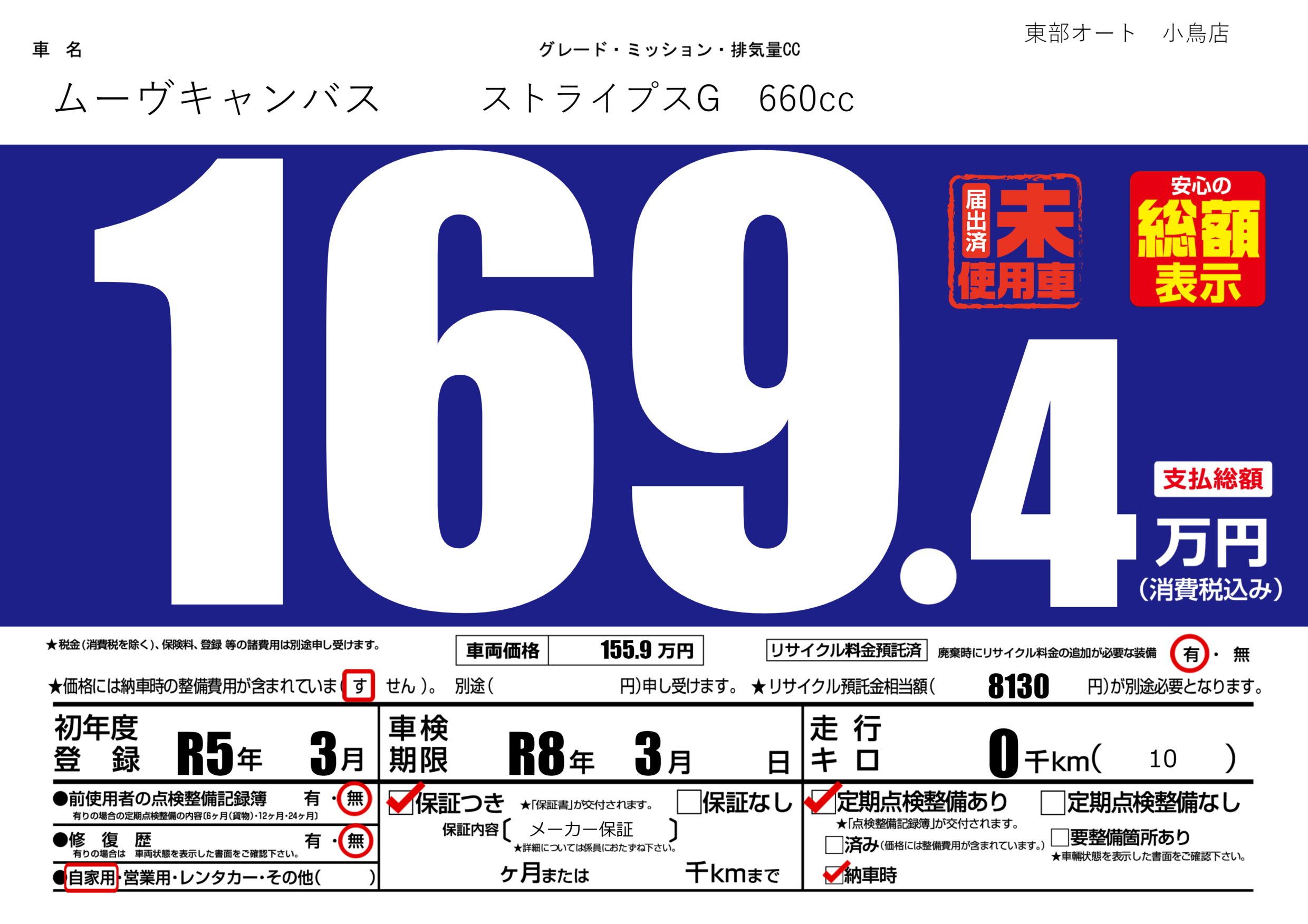| 定期点検整備 | 定期点検整備あり 納車時あり | ||