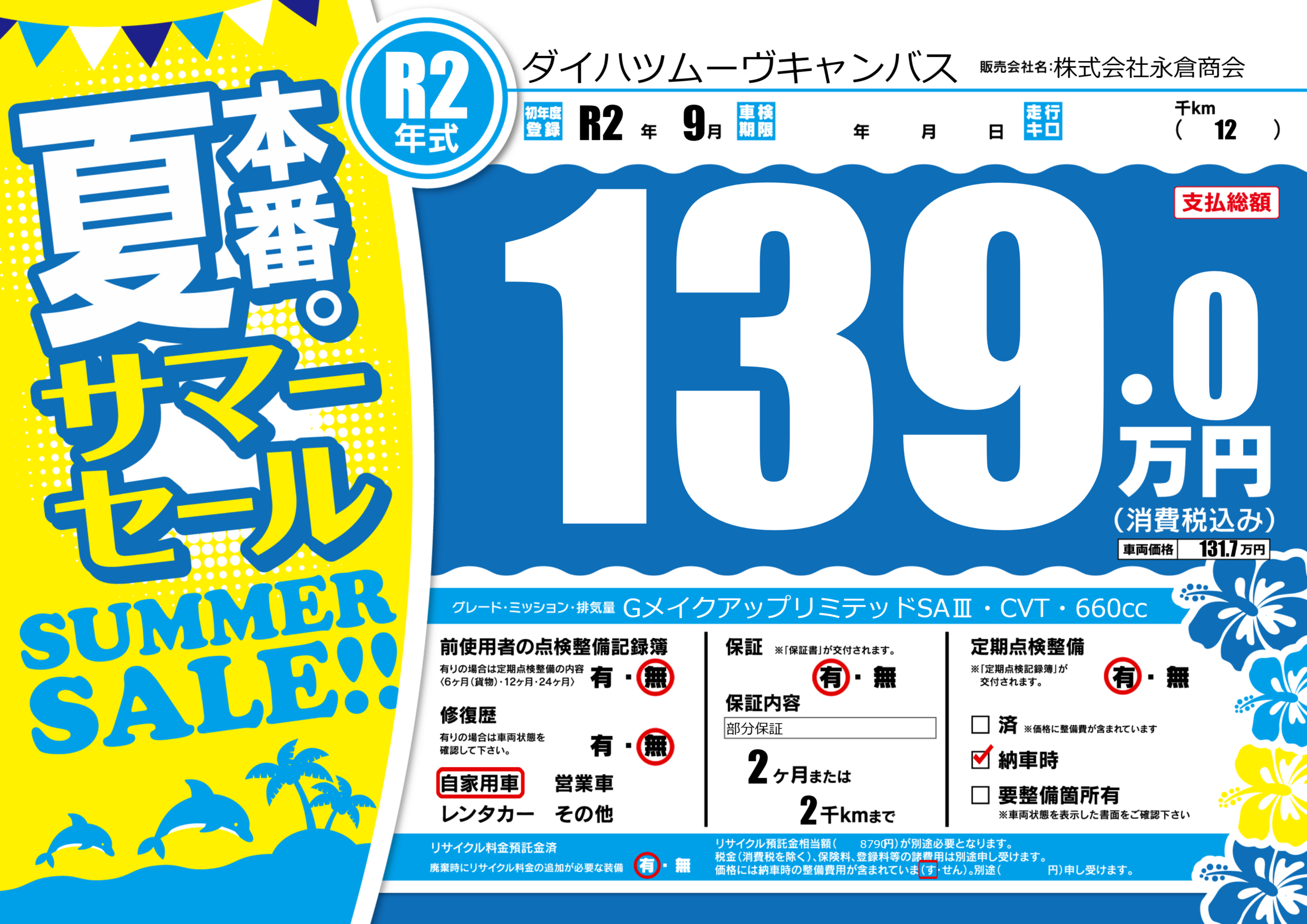 | 初年度登録 | R2年9月 | ||