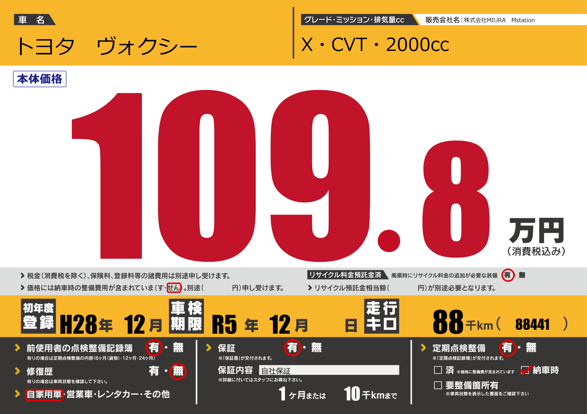 | 定期点検整備 | 定期点検整備あり 納車時あり | ||