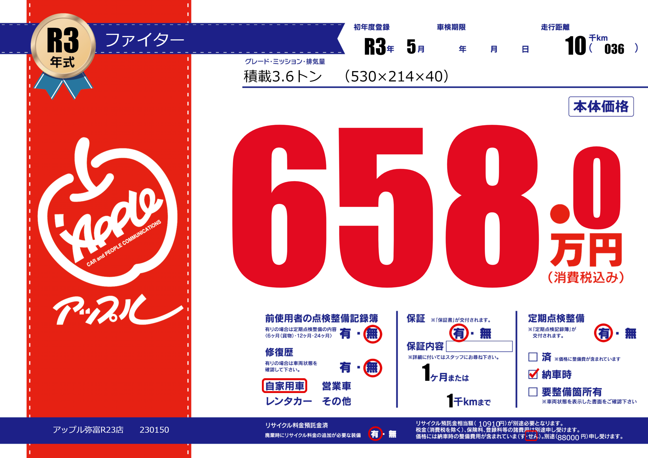 | 車名 | ファイター | グレード ミッション 排気量 |