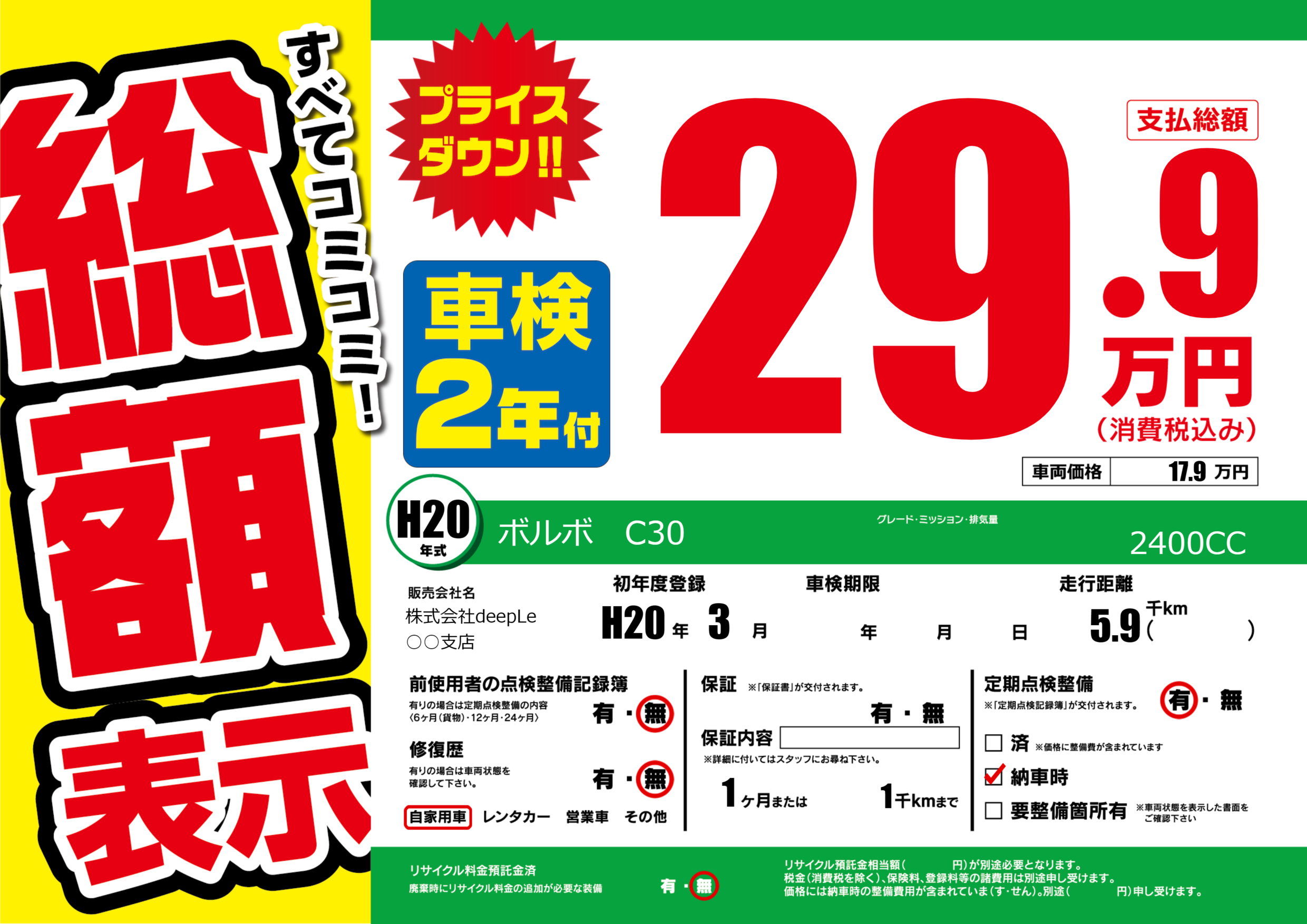 | 定期点検整備 | 定期点検整備あり 納車時あり | ||