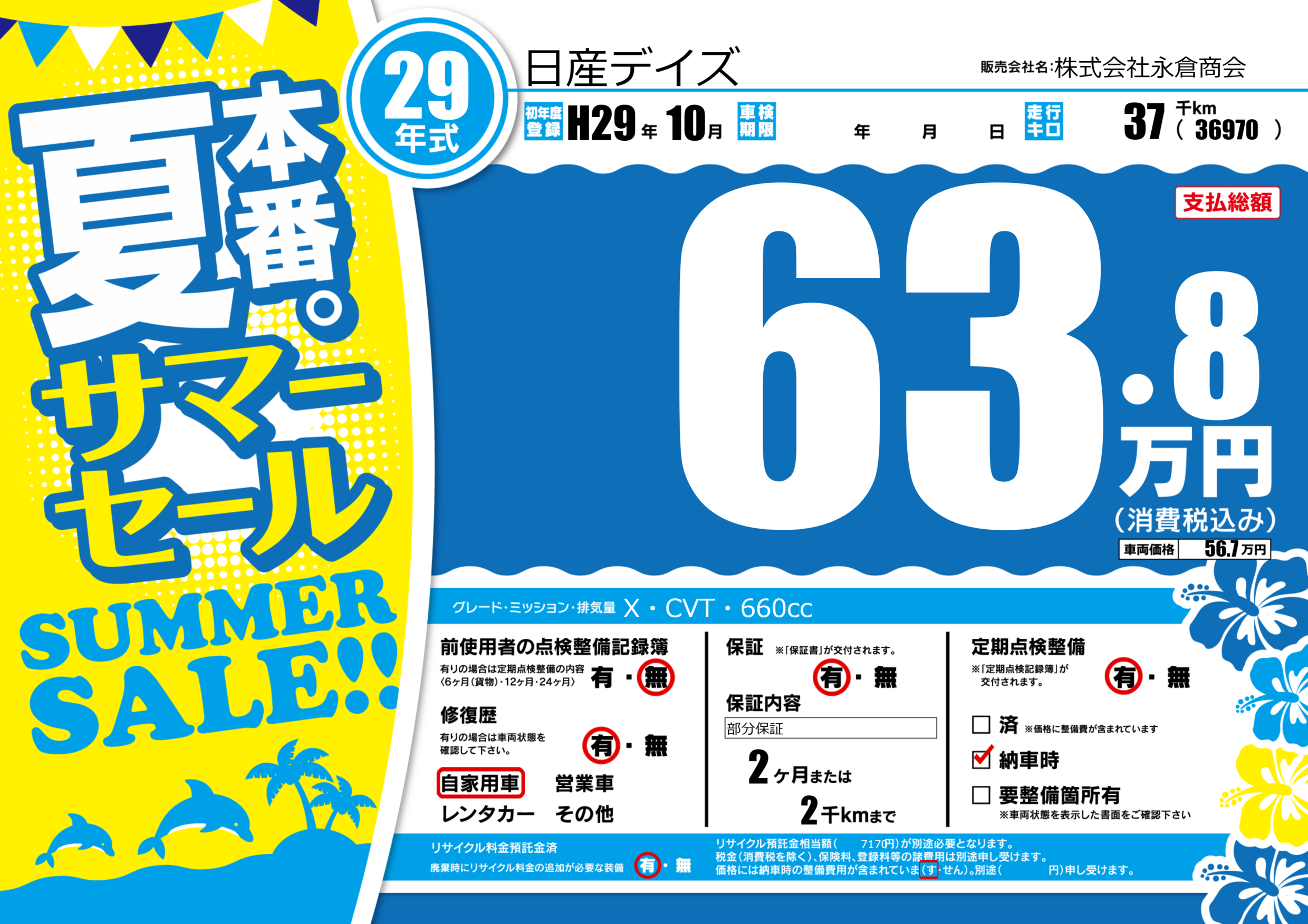 | 走行キロ | 3.7万km | 初年度登録 | H29年10月 |