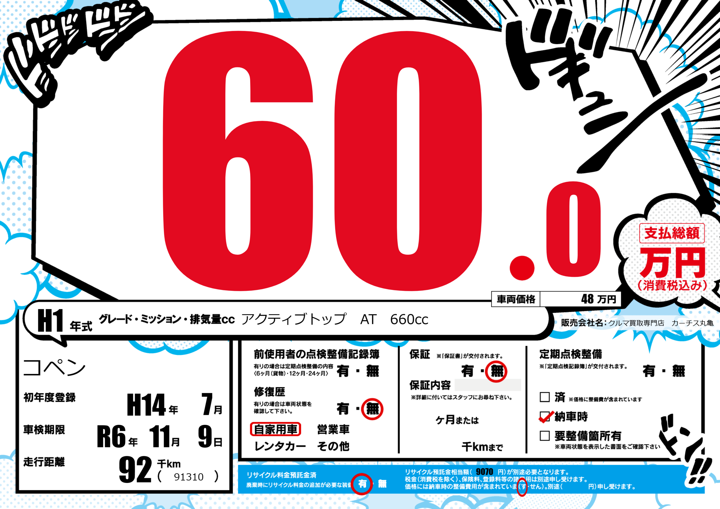 | 走行キロ | 9.2万km | 初年度登録 | H14年7月 |
