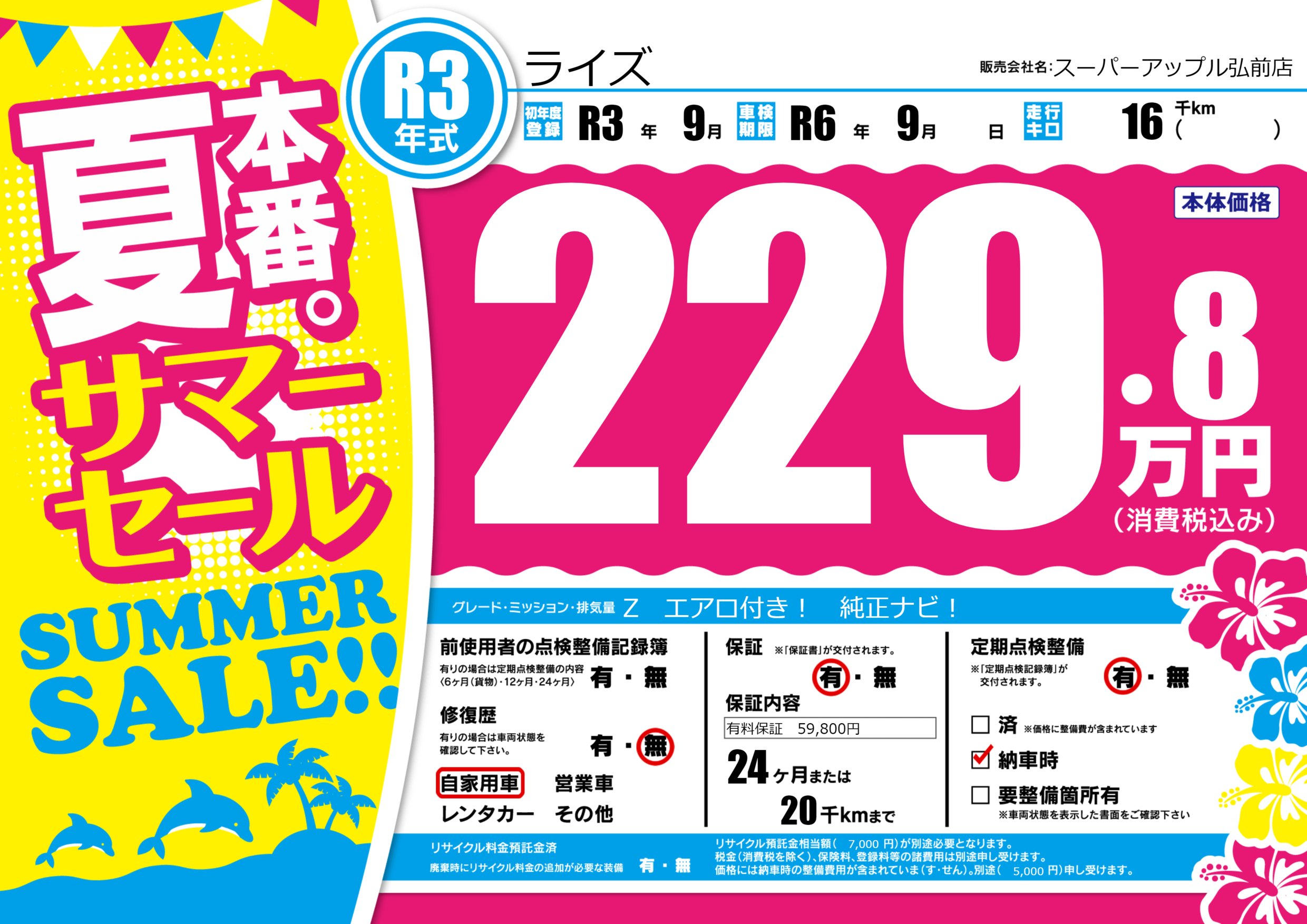 | 走行キロ | 1.6万km | 初年度登録 | R3年9月 |