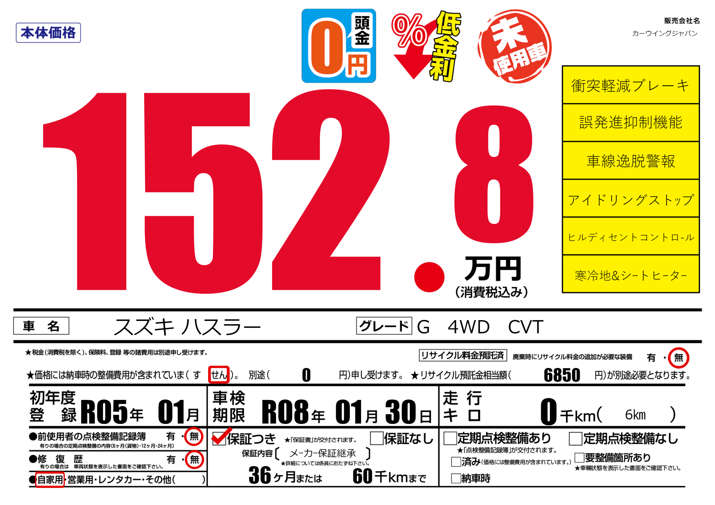 なし | 車検制限 | R08年01月30月 |