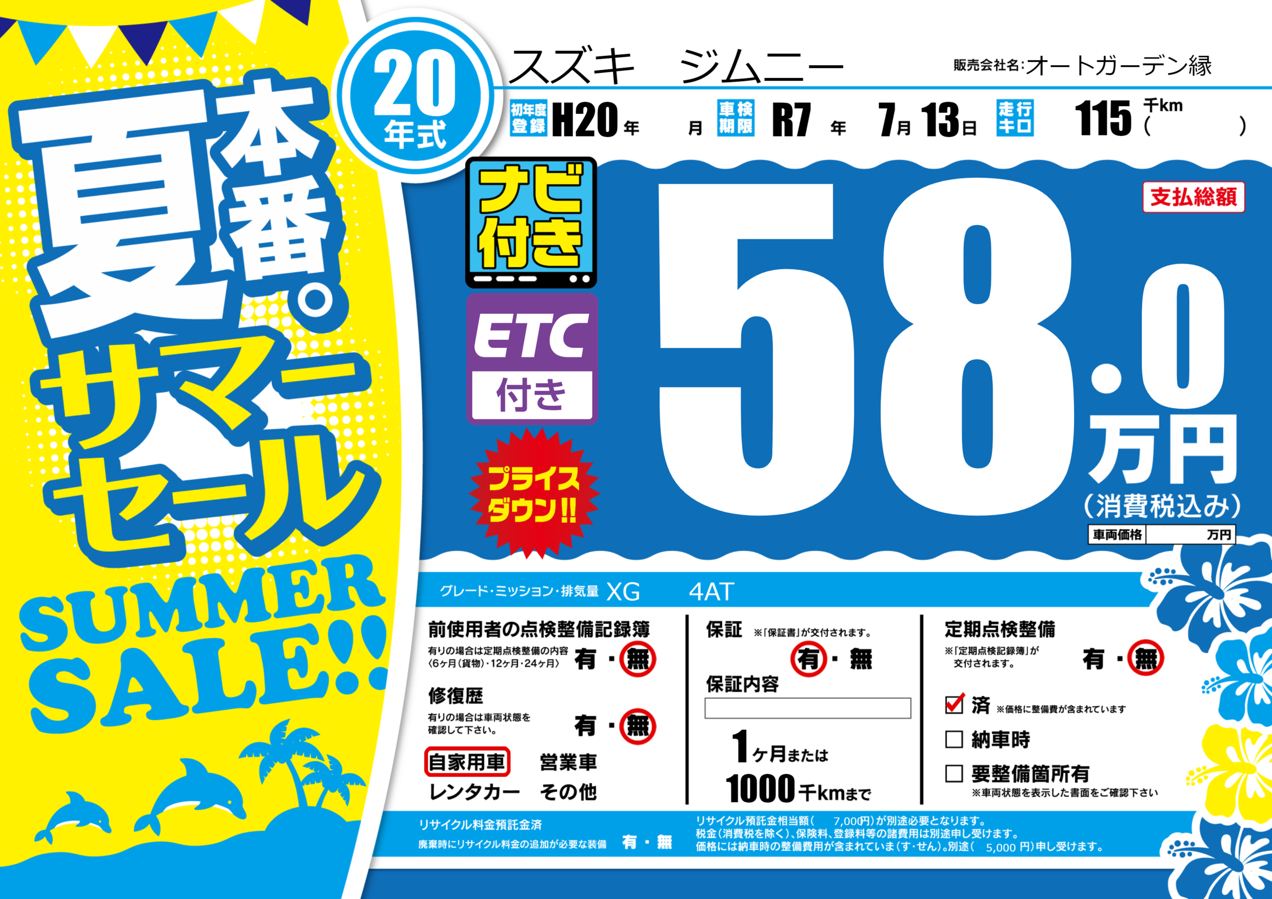| 車名 | スズキ ジムニー | グレード ミッション 排気量 |