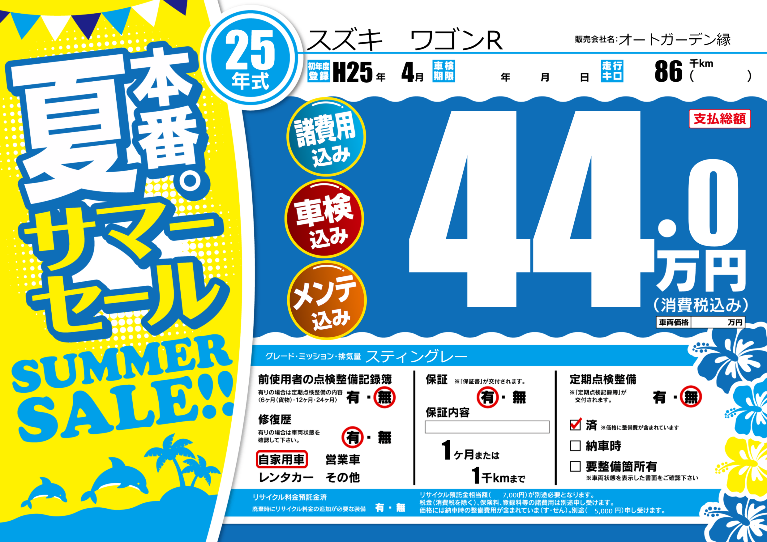 | 走行キロ | 8.6万km | 初年度登録 | H25年4月 |