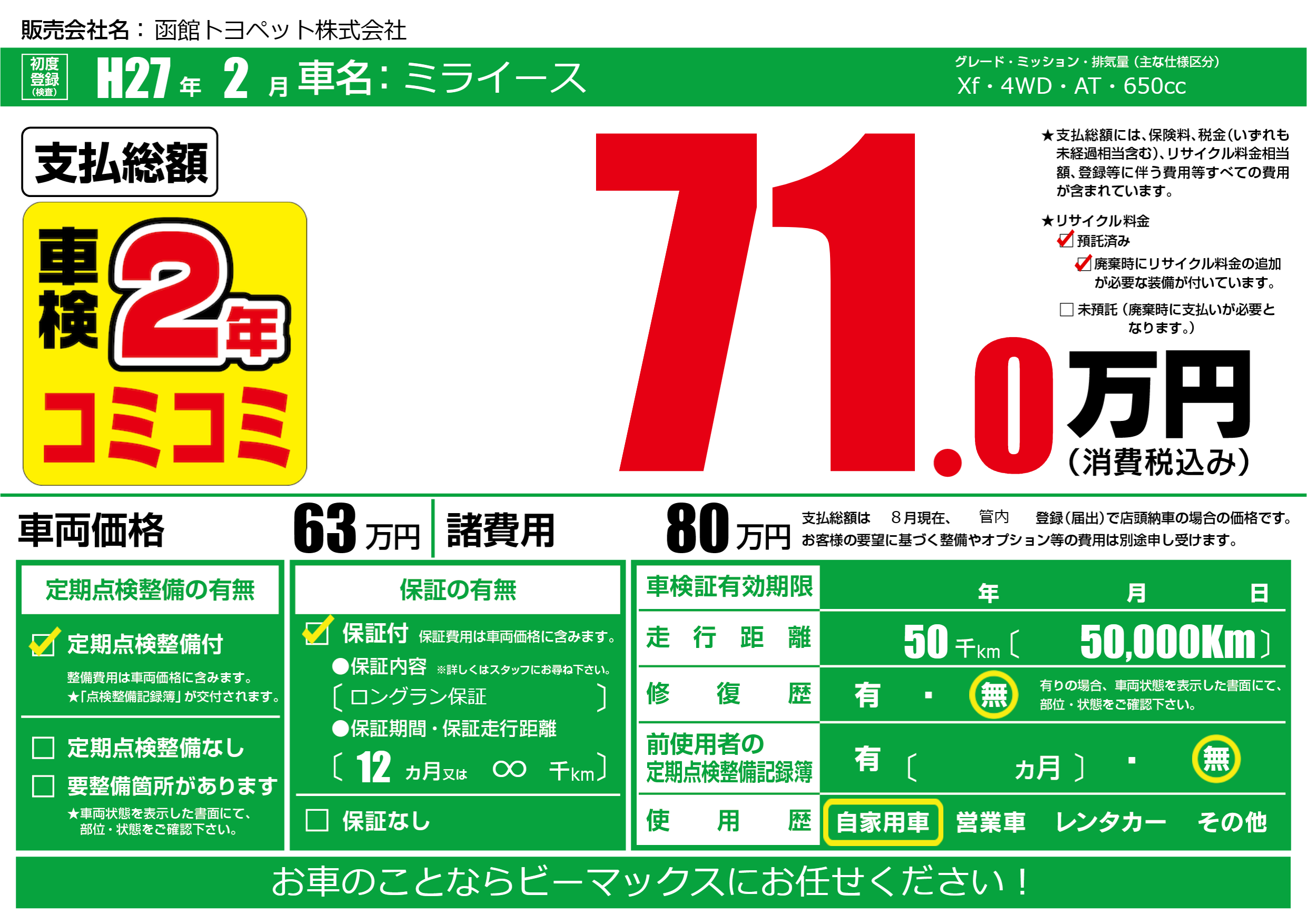 | 走行キロ | 5万km | ||