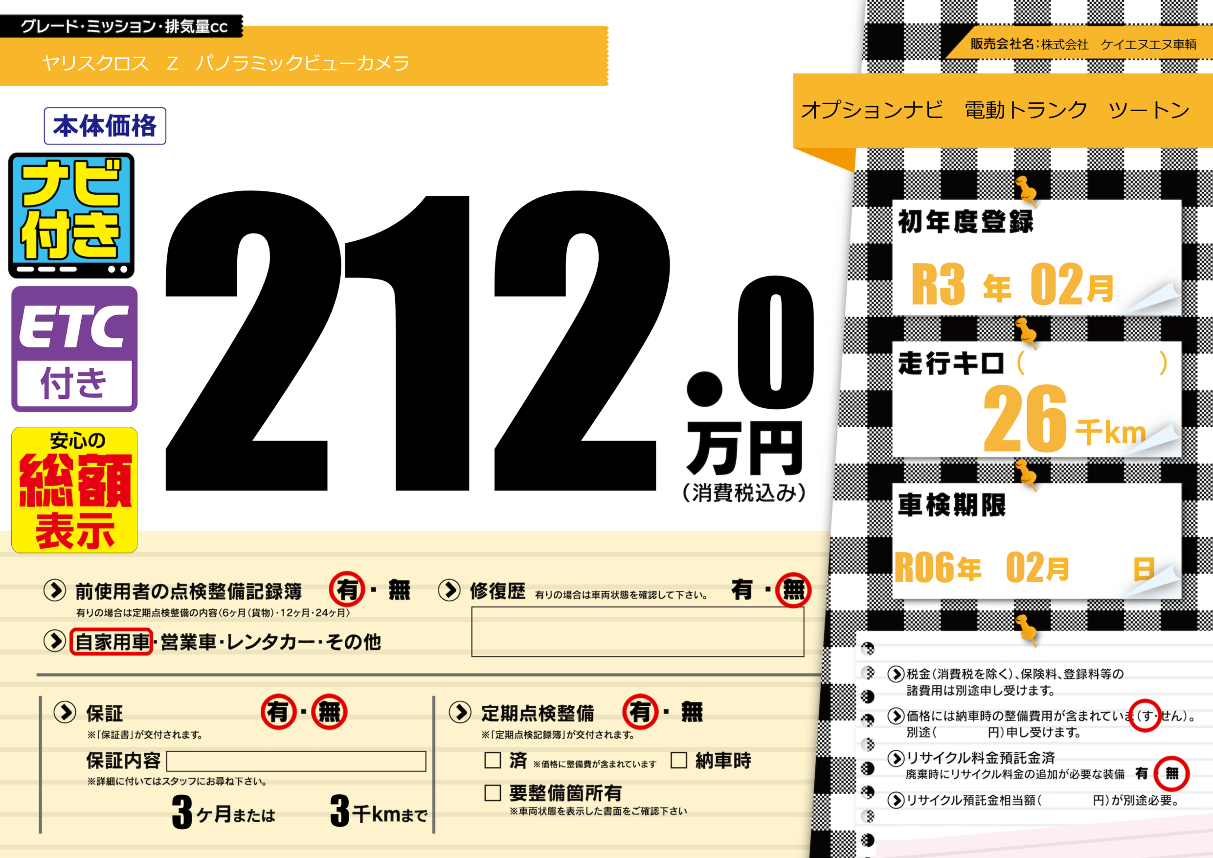 | 走行キロ | 2.6万km | 初年度登録 | R3年02月 |