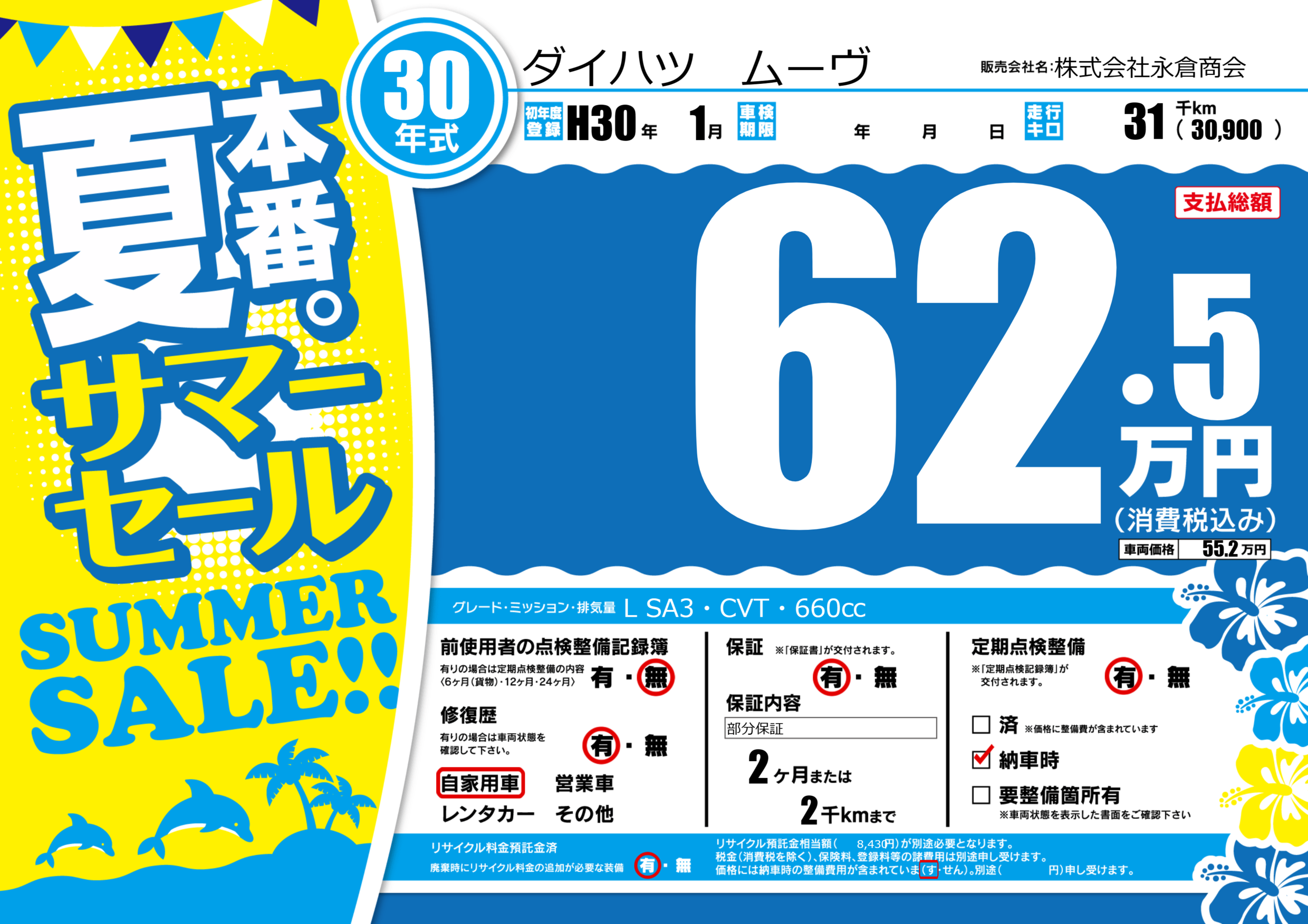| 走行キロ | 3.1万km | 初年度登録 | H30年1月 |