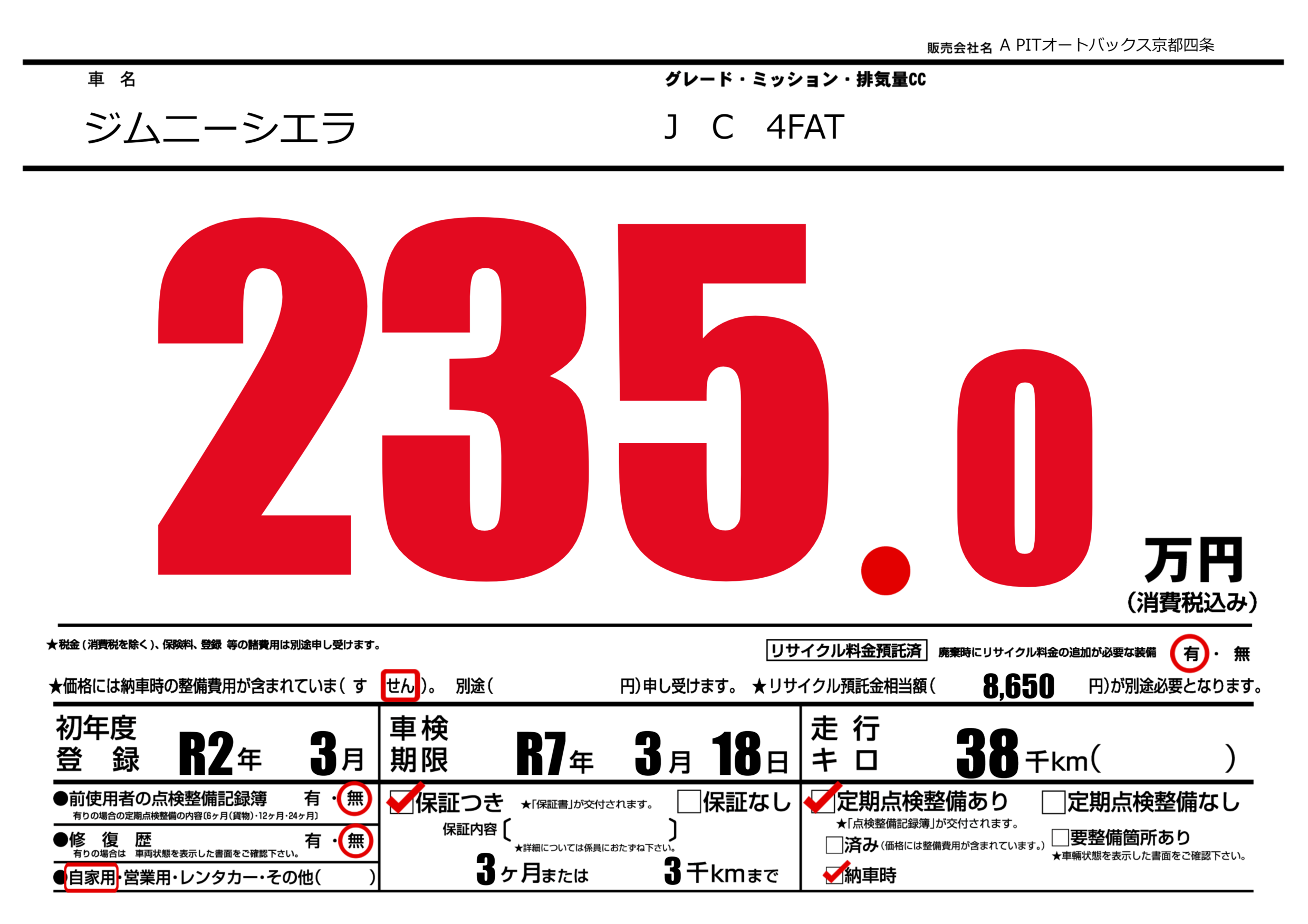 | 車検制限 | R7年 3月 18日 | ||