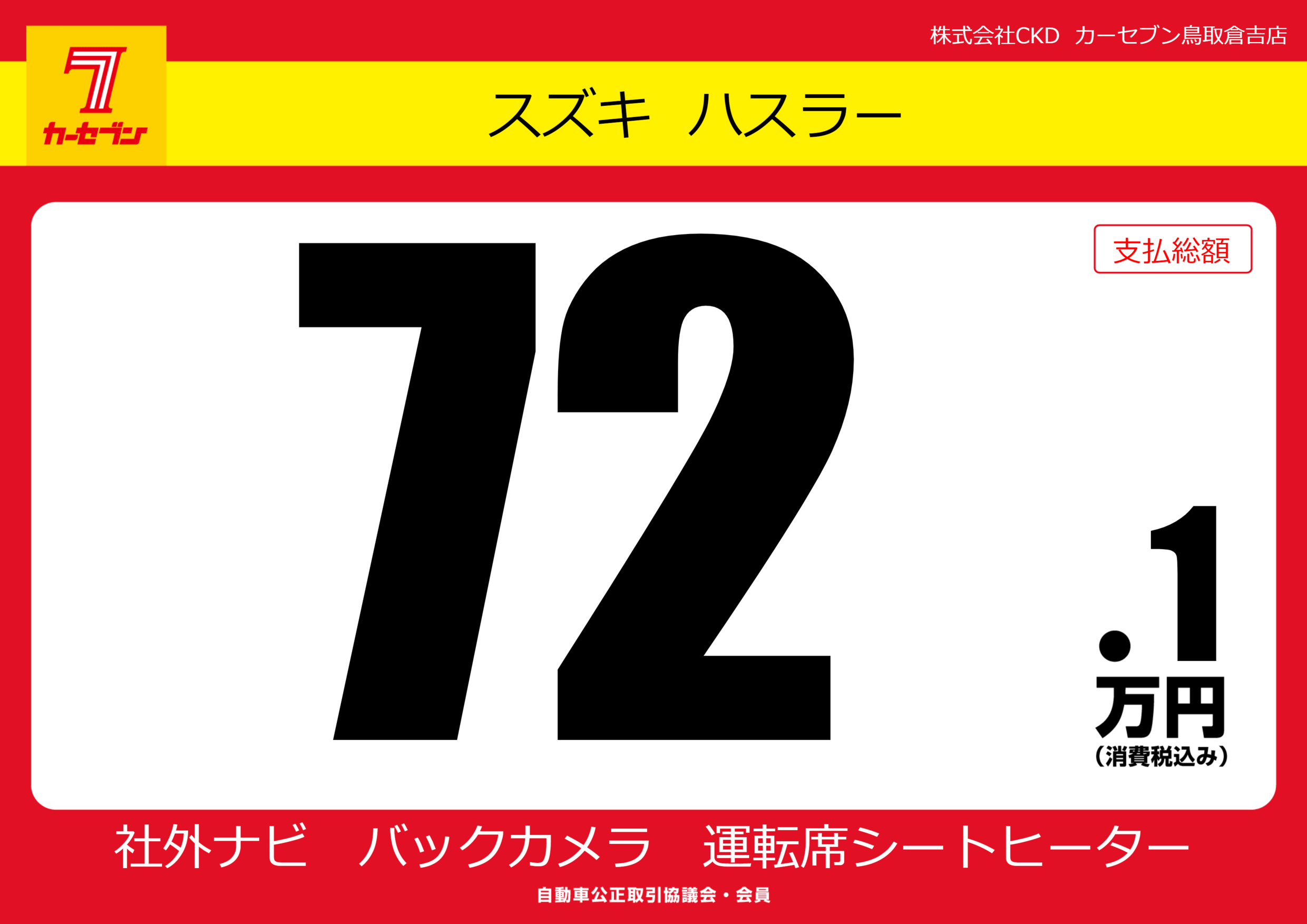 | 車名 | スズキ ハスラー | グレード ミッション 排気量 |