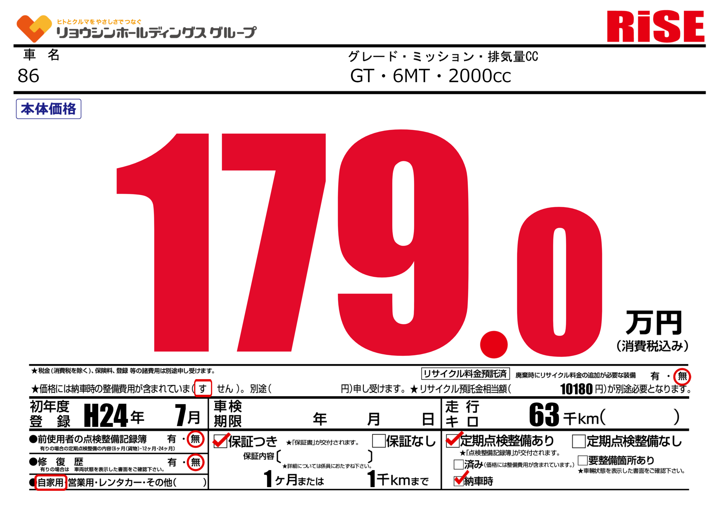 | 車名 | 86 | グレード ミッション 排気量 |