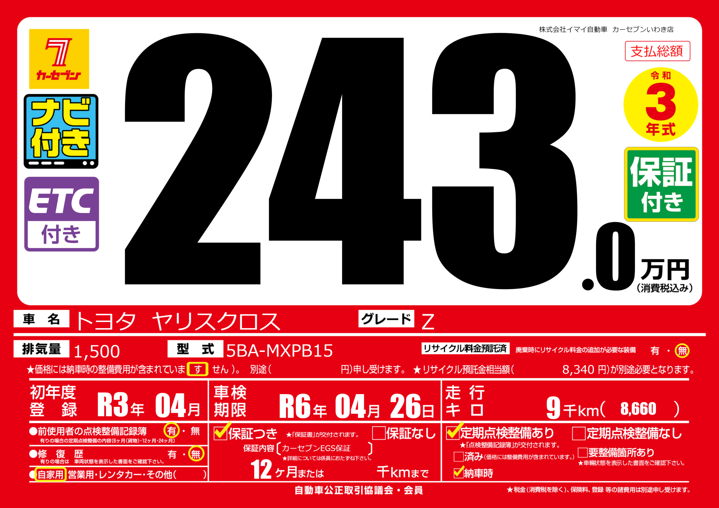 あり | 車検制限 | R6年04月26月 |