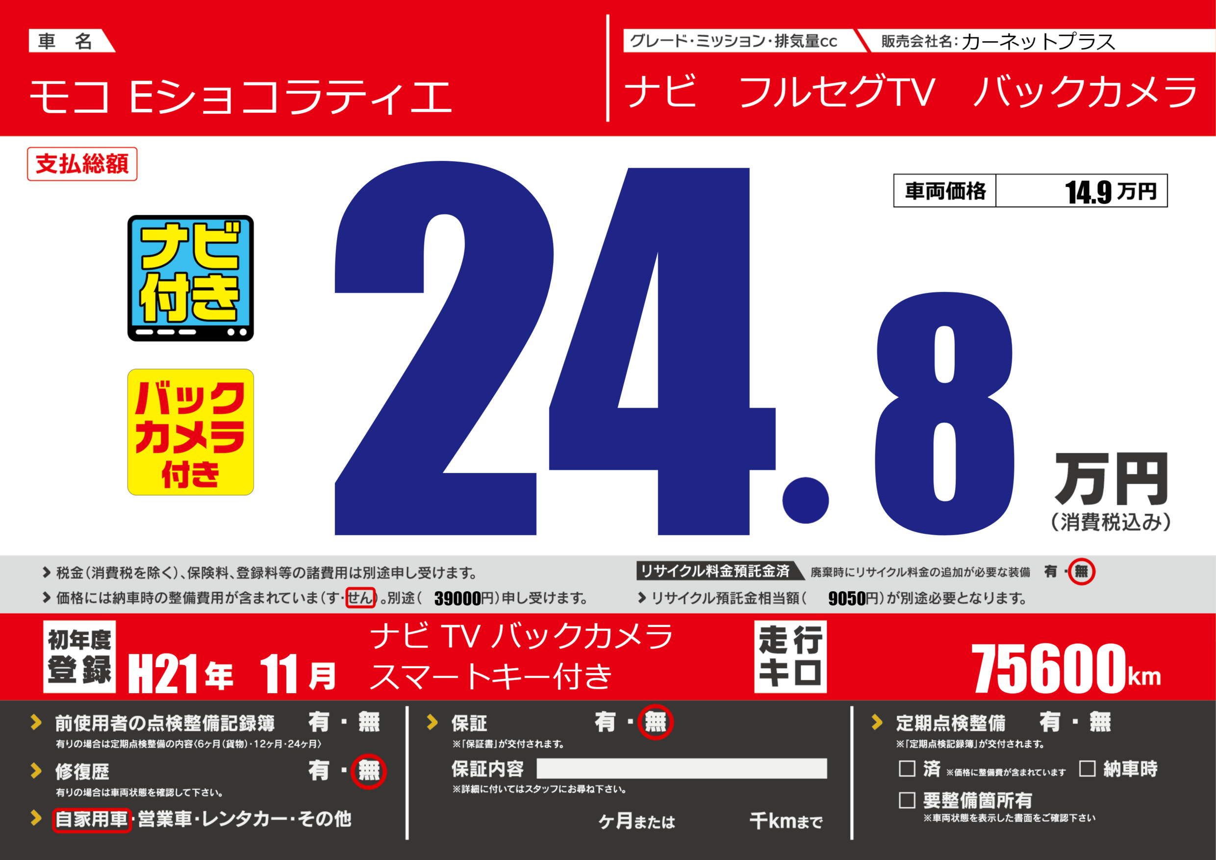 | 車名 | モコ Eショコラティエ | グレード ミッション 排気量 |