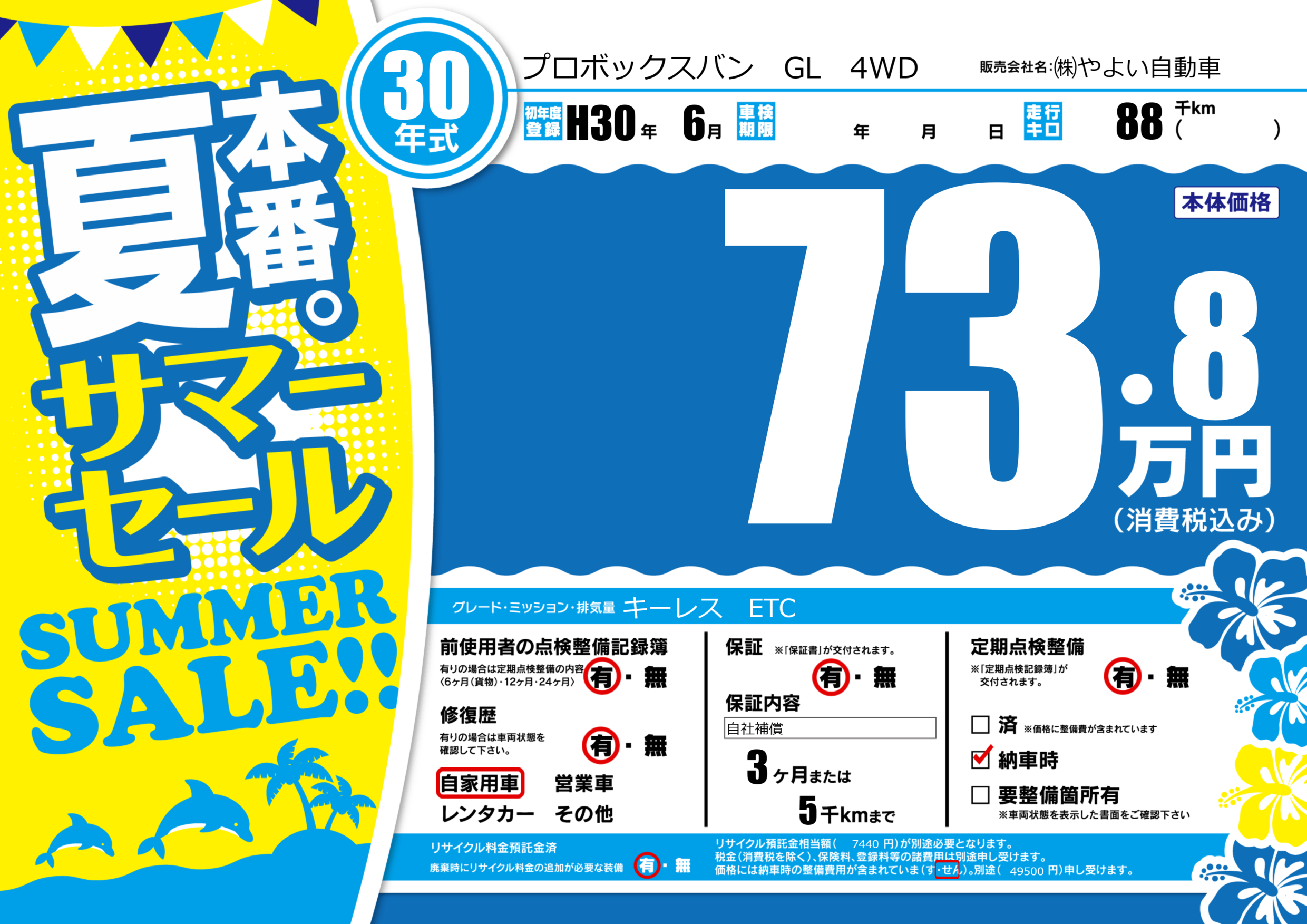 | 走行キロ | 8.8万km | 初年度登録 | H30年6月 |