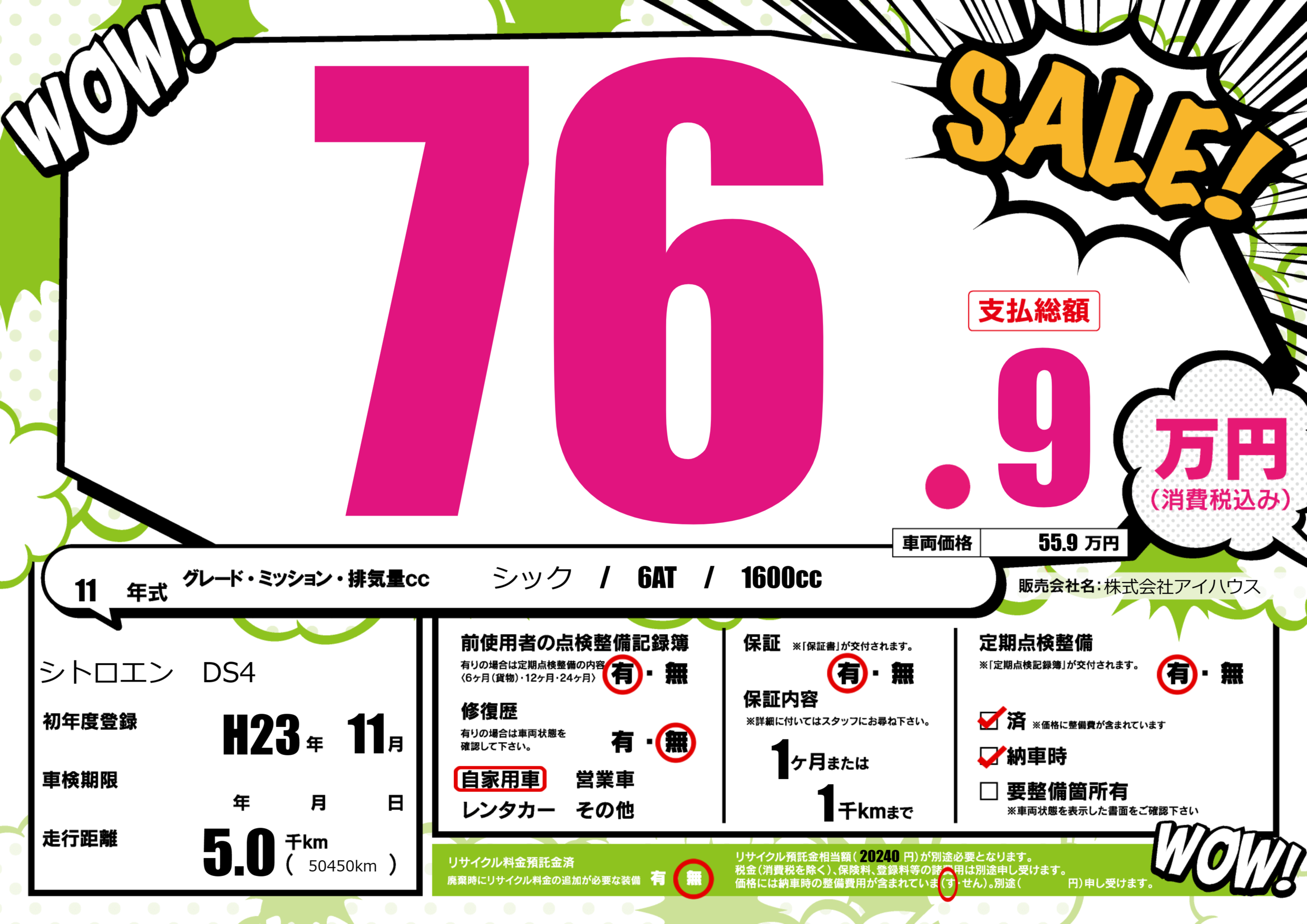 | 車名 | シトロエン DS4 | グレード ミッション 排気量 |