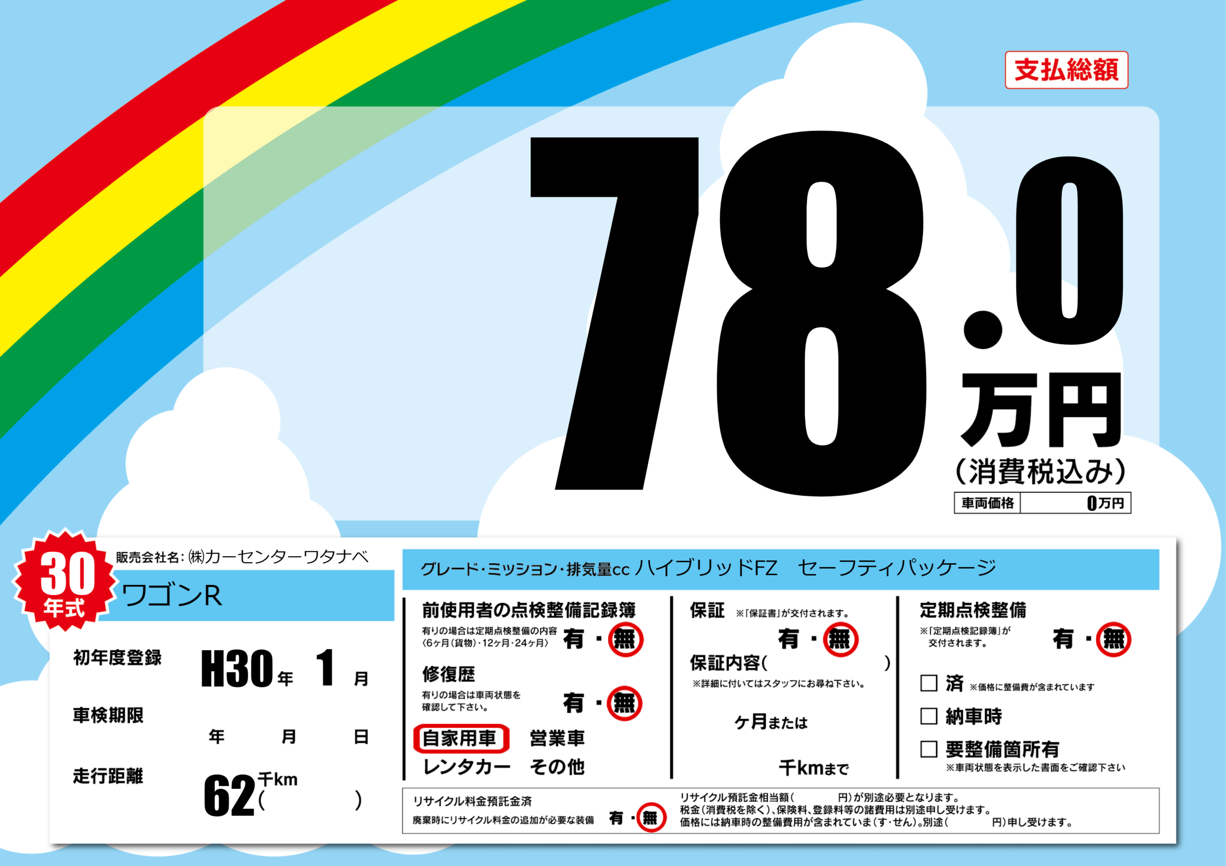 | 車名 | ワゴンR | グレード ミッション 排気量 |
