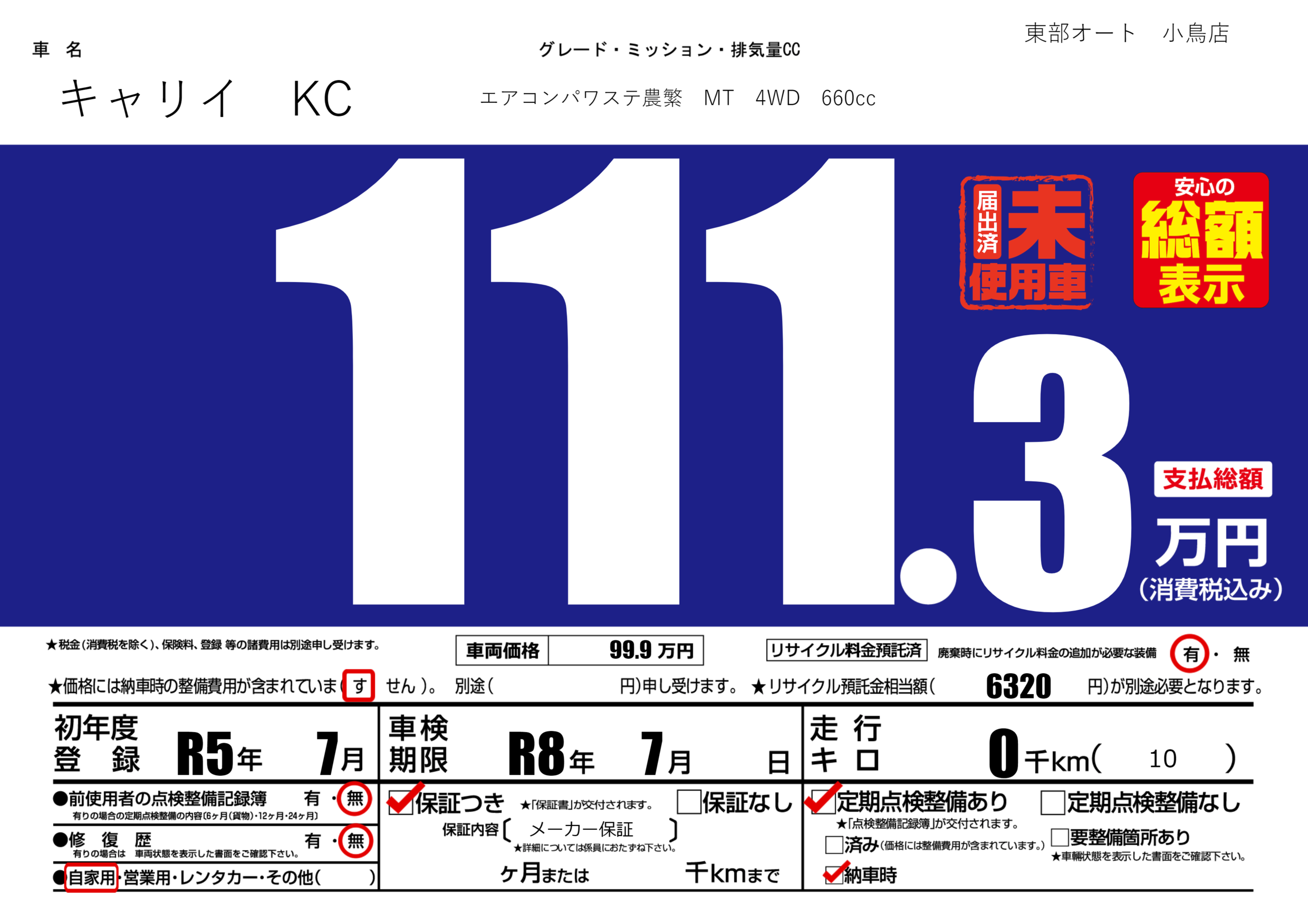 東部オート 小鳥店の展示車