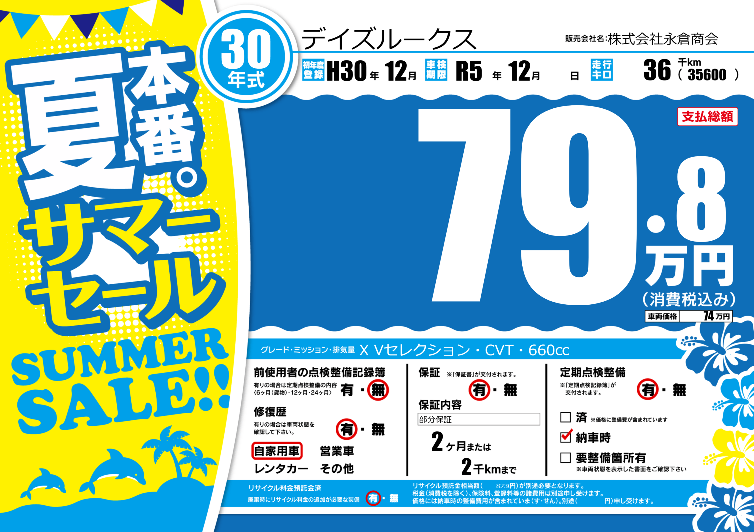 | 定期点検整備 | 定期点検整備あり 納車時あり | ||