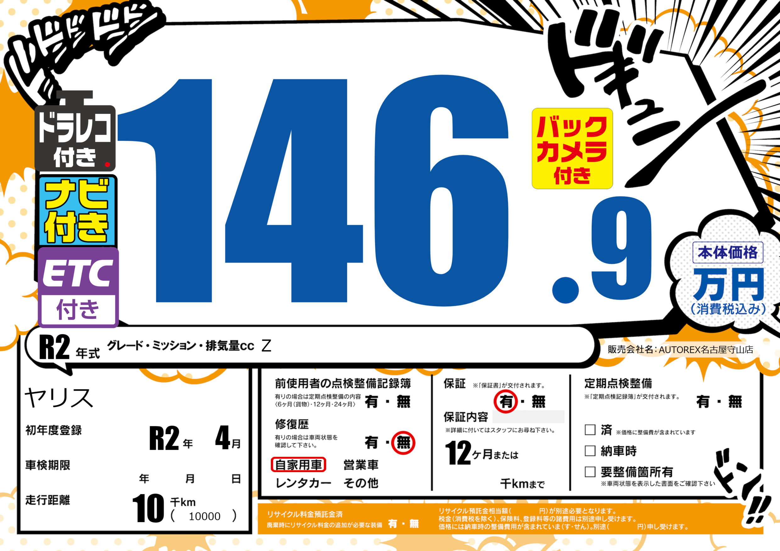 保証付き 保証内容(---) 12ヶ月または()千kmまで |