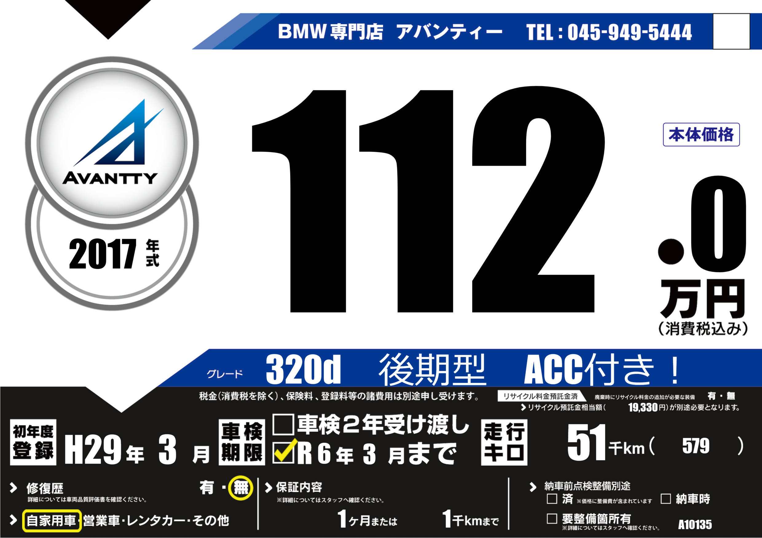 | 走行キロ | 5.1万km | 初年度登録 | H29年3月 |
